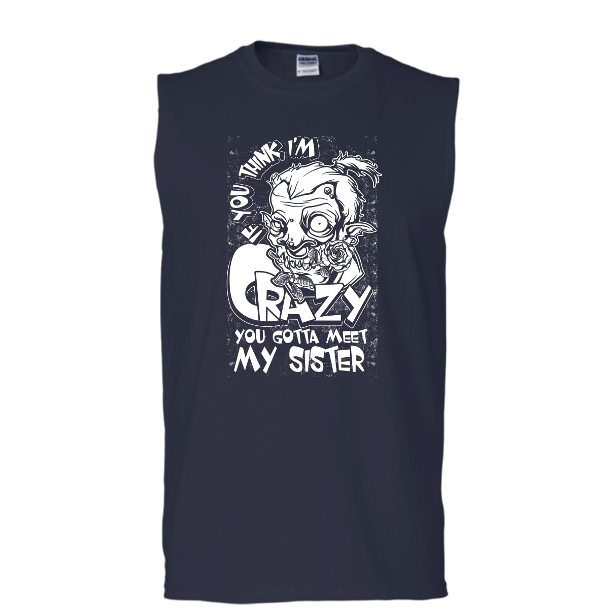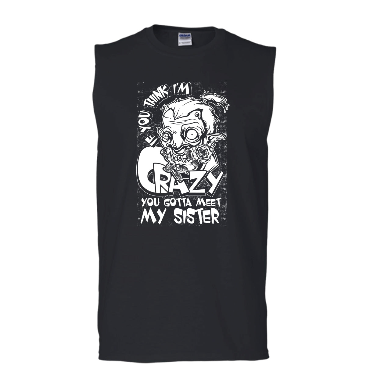 If You Think I'm Crazy T Shirt, You Gotta Meet My Sister T Shirt, Cool T Shirt (Men's Cotton Sleeveless)