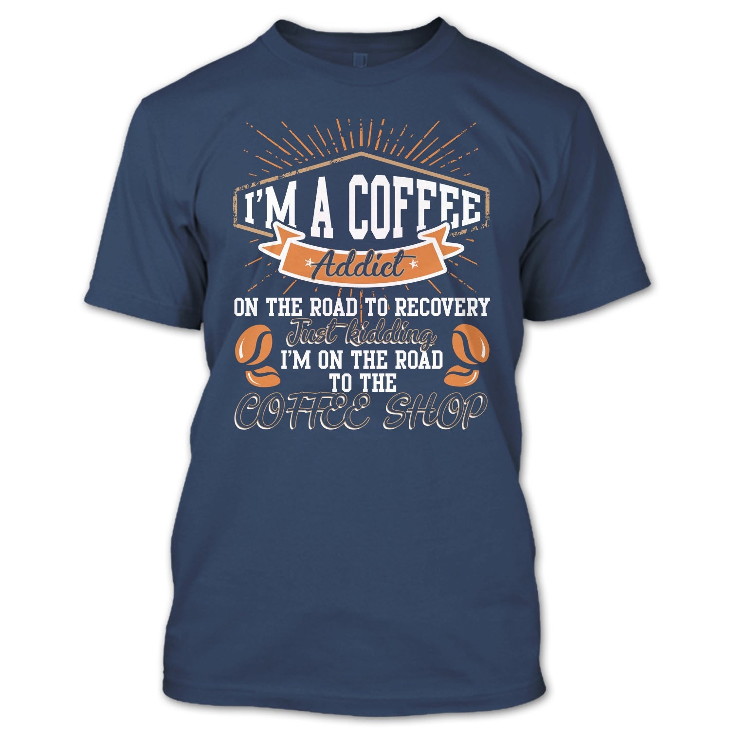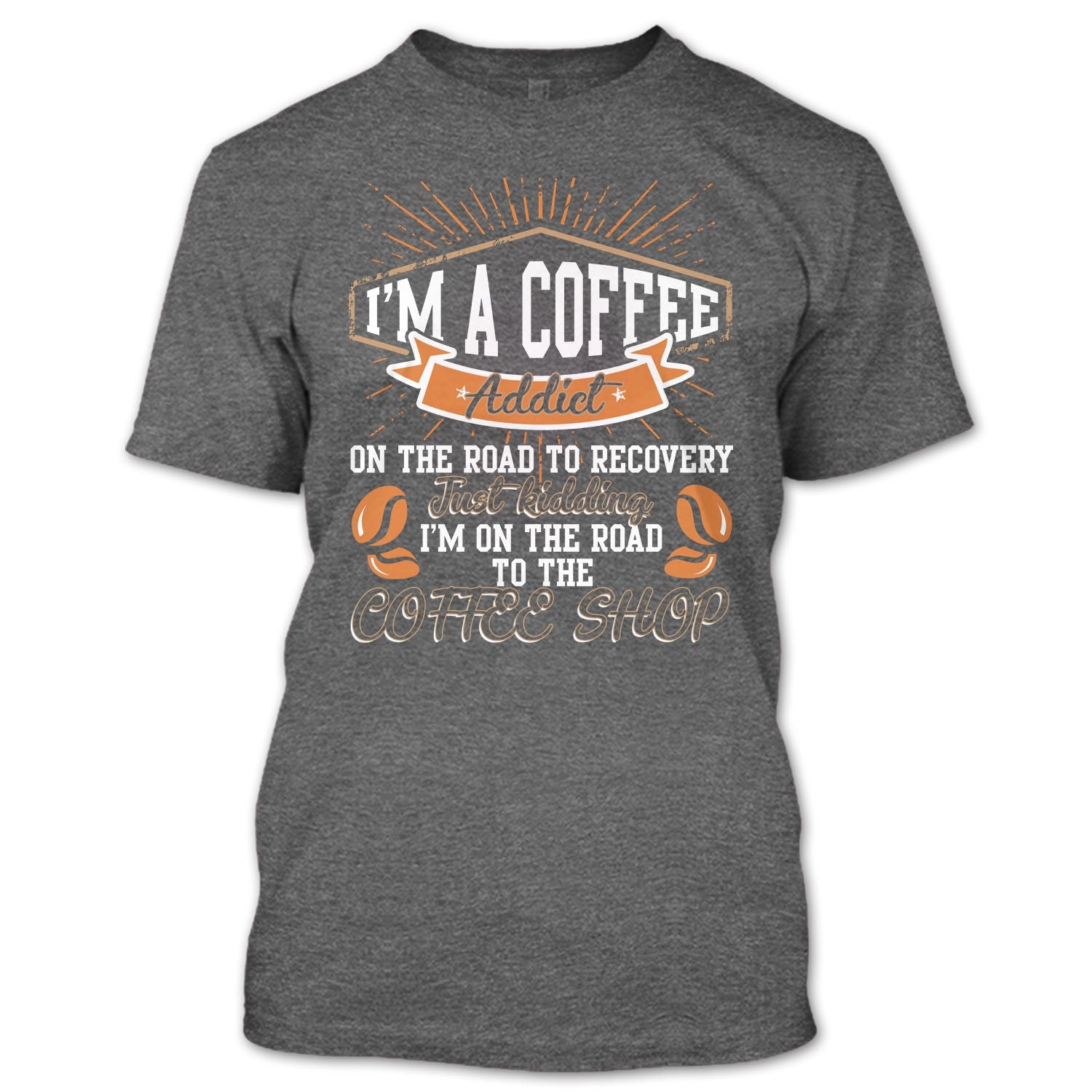 I'm A Coffee Addict T Shirt, I'm On The Road To The Coffee Shop T Shirt