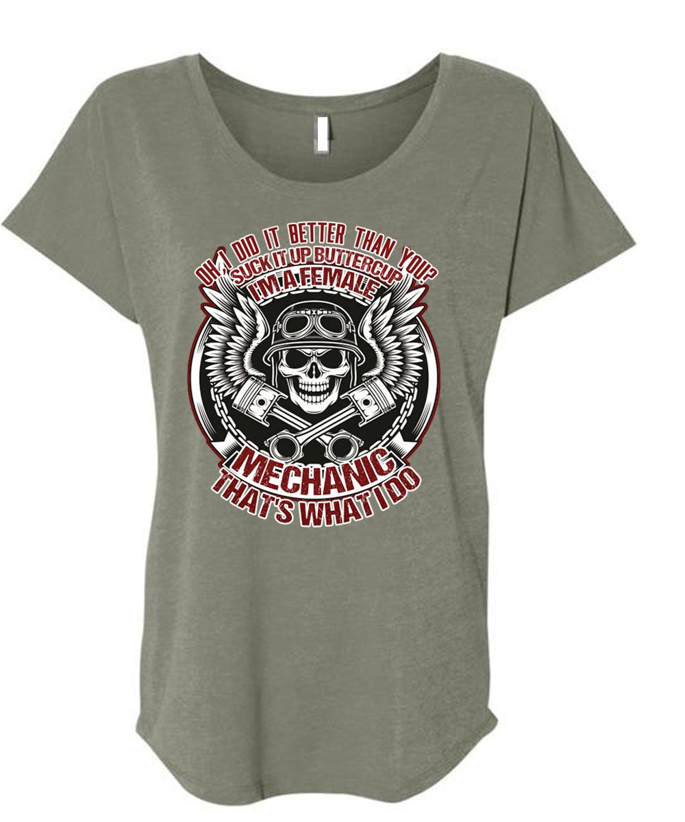 I'm A Female Mechanic T Shirt, I Love Mechanic T Shirt, Cool Shirt (Ladies' Triblend Dolman Sleeve)