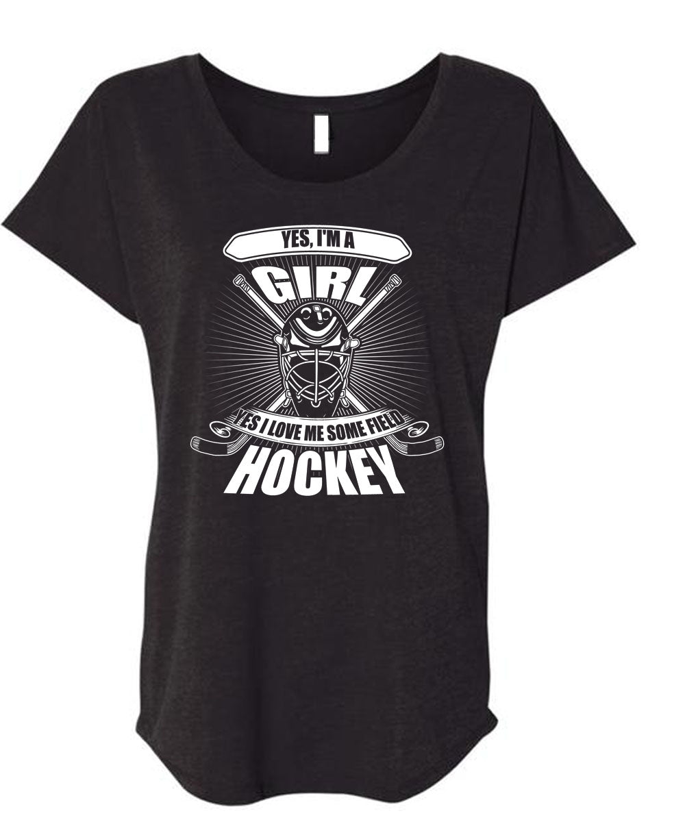 I'm A Girl T Shirt, I Love Me Some Field Hockey T Shirt, Cool Shirt (Ladies' Triblend Dolman Sleeve)