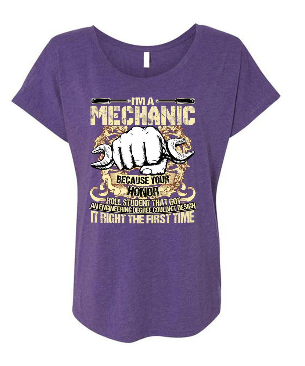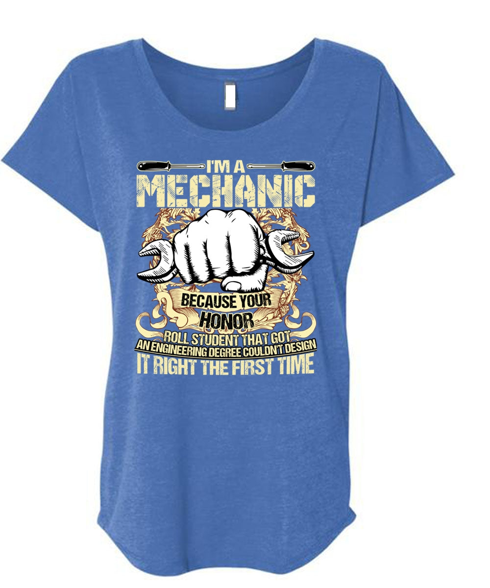 I'm A Mechanic T Shirt, It Right The First Time T Shirt, Cool Shirt (Ladies' Triblend Dolman Sleeve)