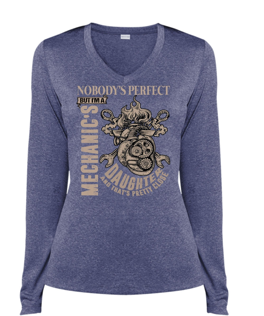 I'm A Mechanic's Daughter T Shirt, Being A Mechanic T Shirt, Cool Shirt (Ladies LS Heather V-Neck)