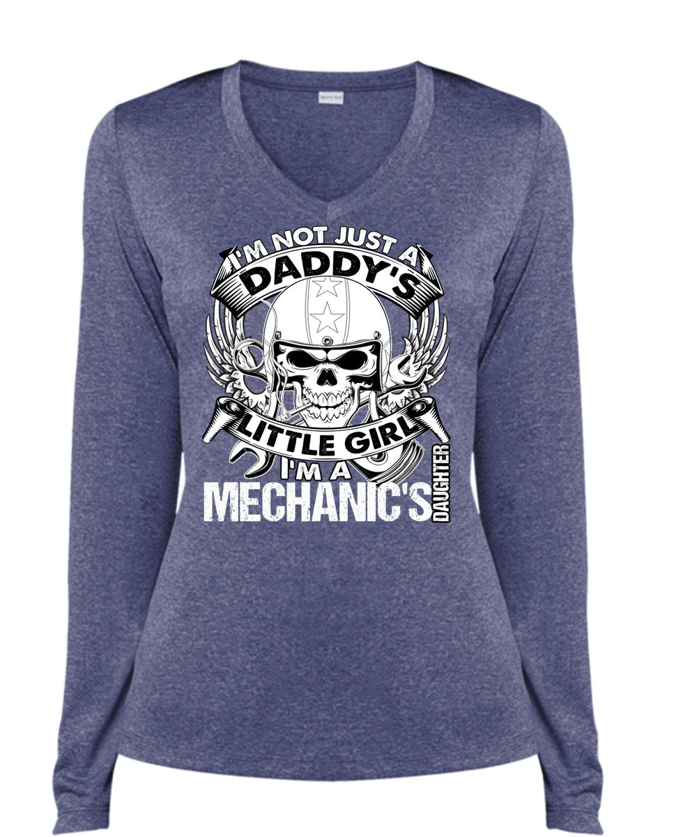 I'm A Mechanic's Daughter T Shirt, Daddy's Little Girl T Shirt, Cool Shirt (Ladies LS Heather V-Neck)