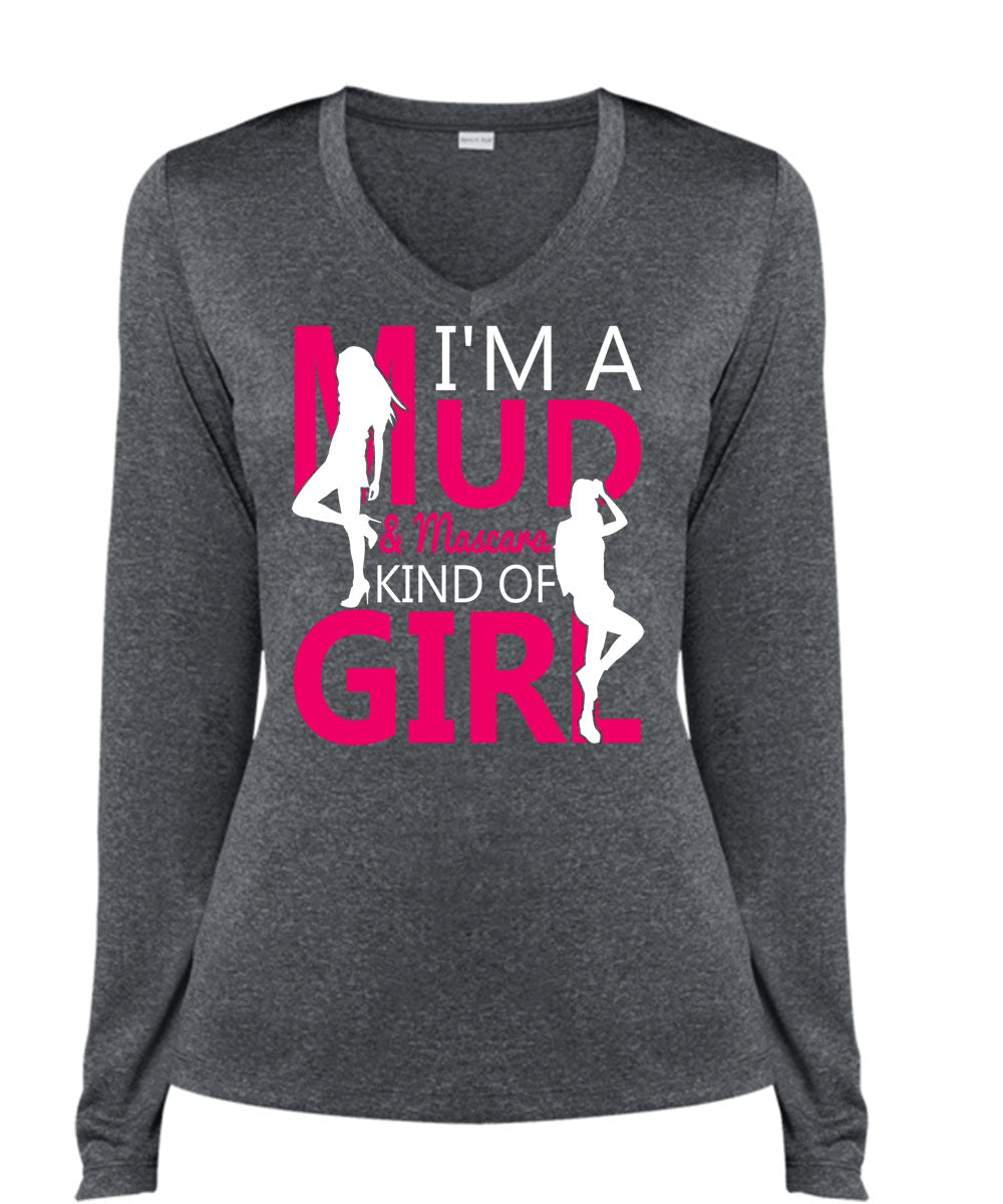 I'm A Mud T Shirt, Mascara Kind Of Girl T Shirt, Cool Shirt (Ladies LS Heather V-Neck)
