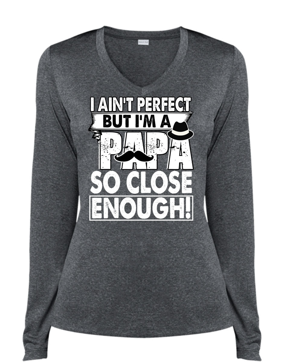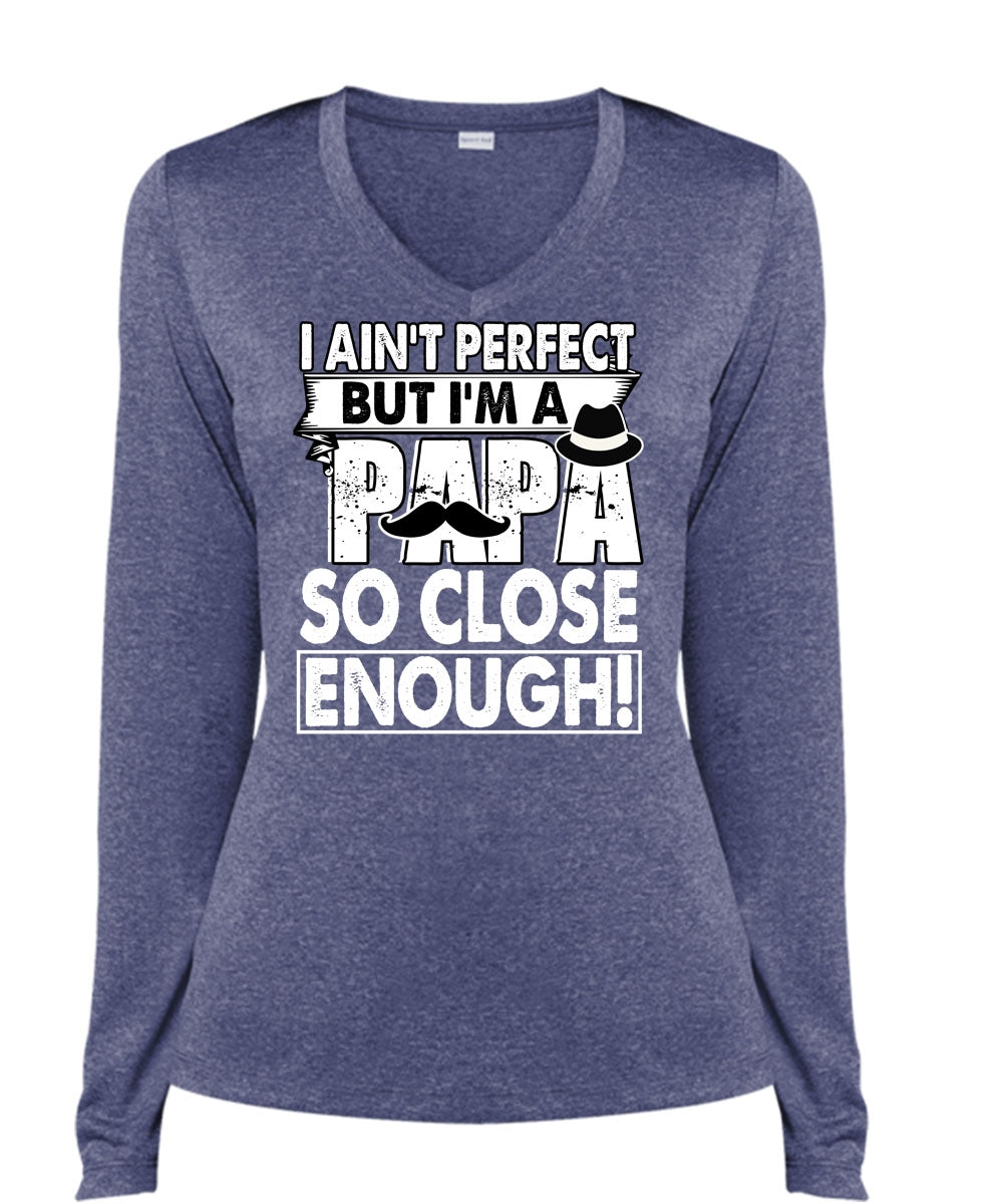 I'm A Papa So Close Enough T Shirt, Being A Dad T Shirt, Cool Shirt (Ladies LS Heather V-Neck)