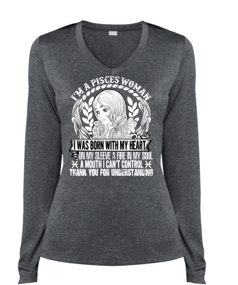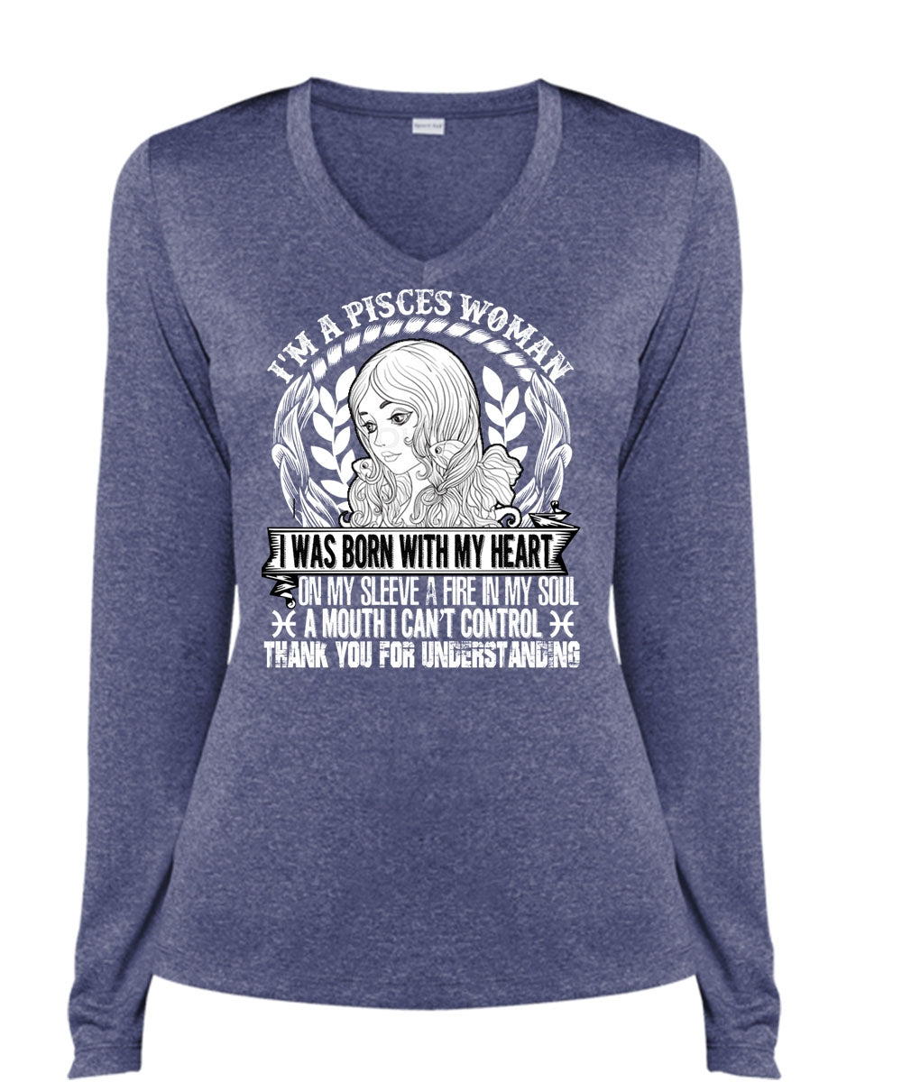 I'm A Pisces Woman T Shirt, Fire In My Soul T Shirt, Cool Shirt (Ladies LS Heather V-Neck)
