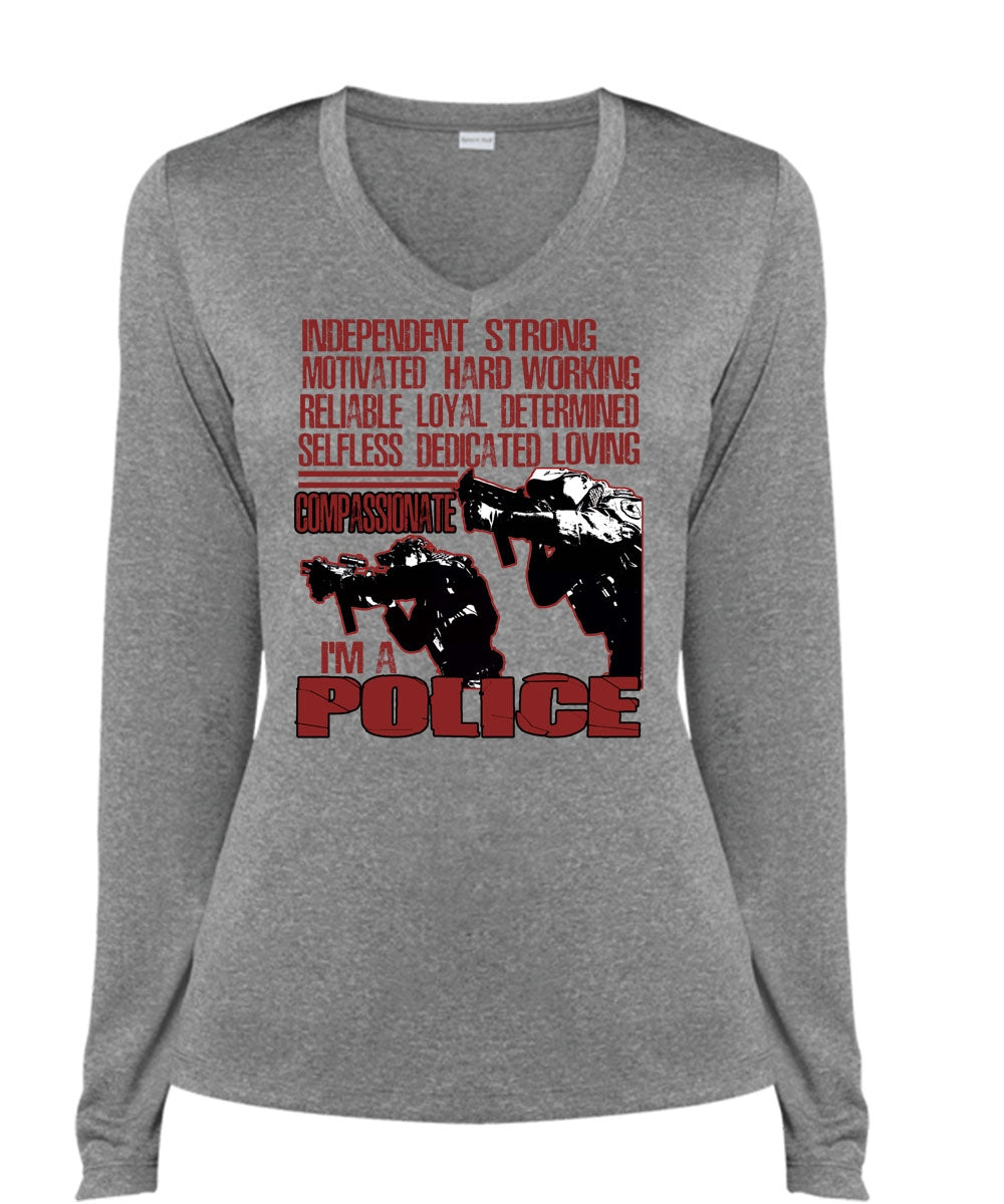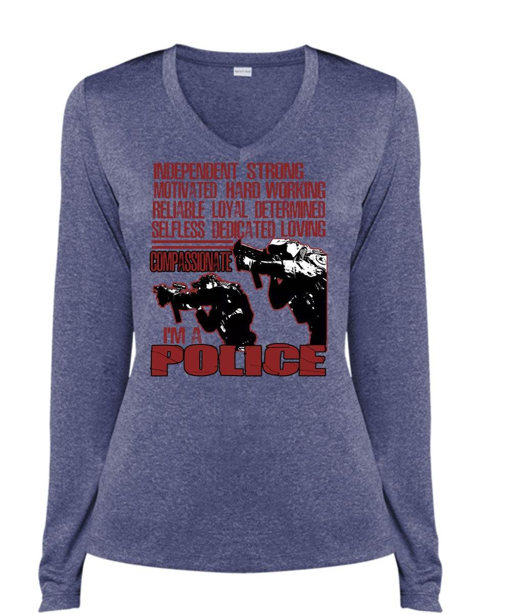 I'm A Police T Shirt, Motivated Hard Working T Shirt, Cool Shirt (Ladies LS Heather V-Neck)