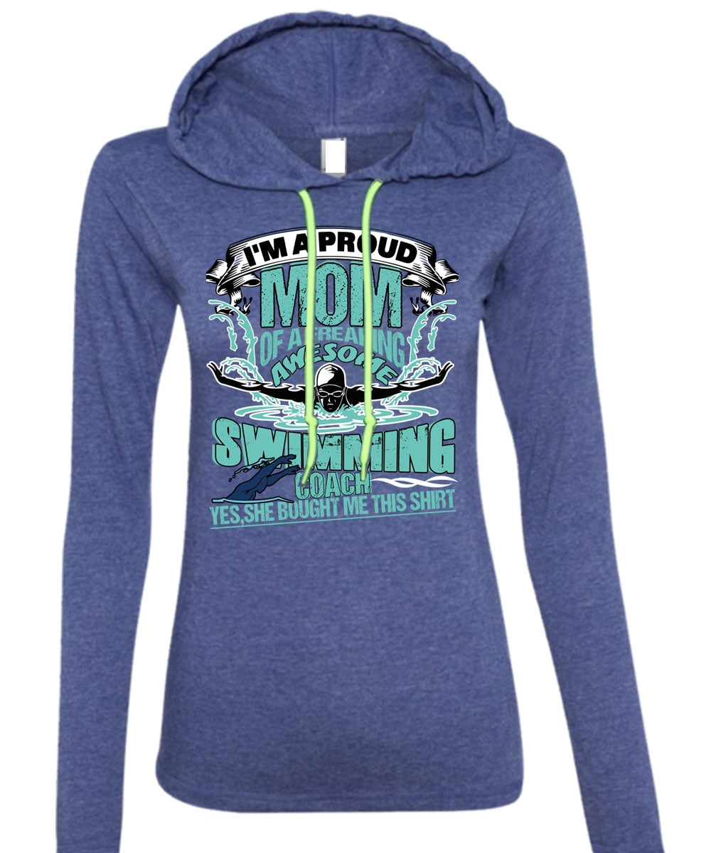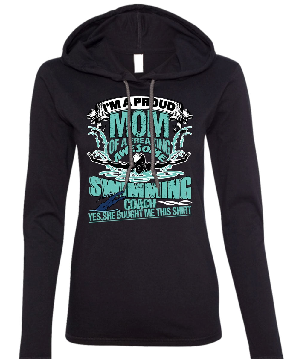 I'm A Proud Mom T Shirt, Awesome Swimming Coach T Shirt (Anvil Ladies Ringspun Hooded)