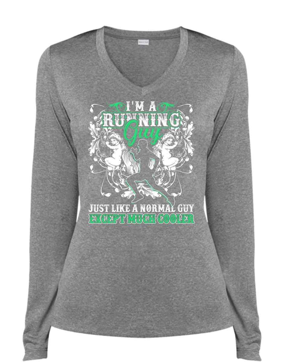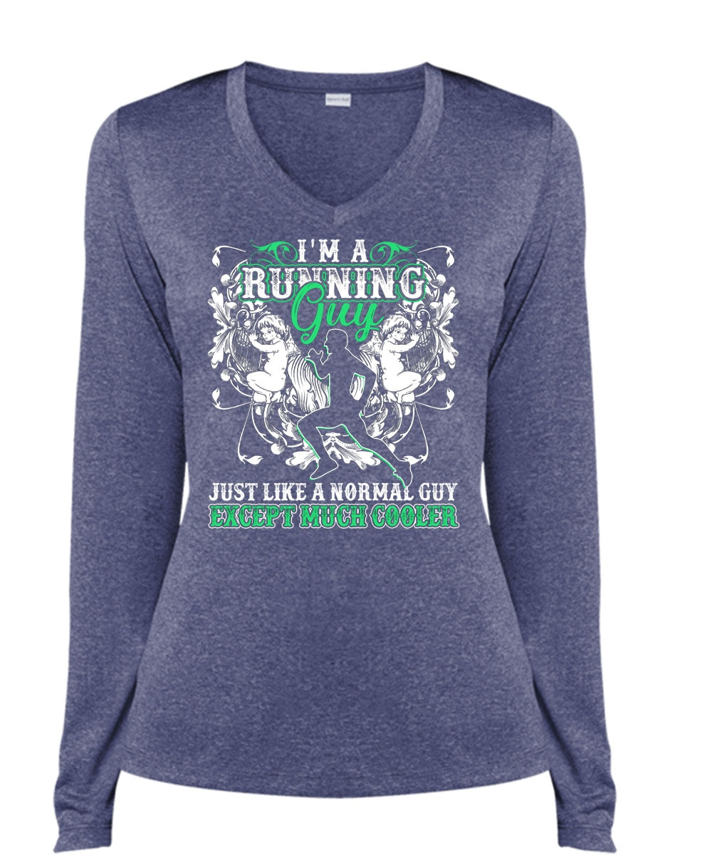 I'm A Running Guy T Shirt, Just Like A Normal Guy T Shirt, Cool Shirt (Ladies LS Heather V-Neck)