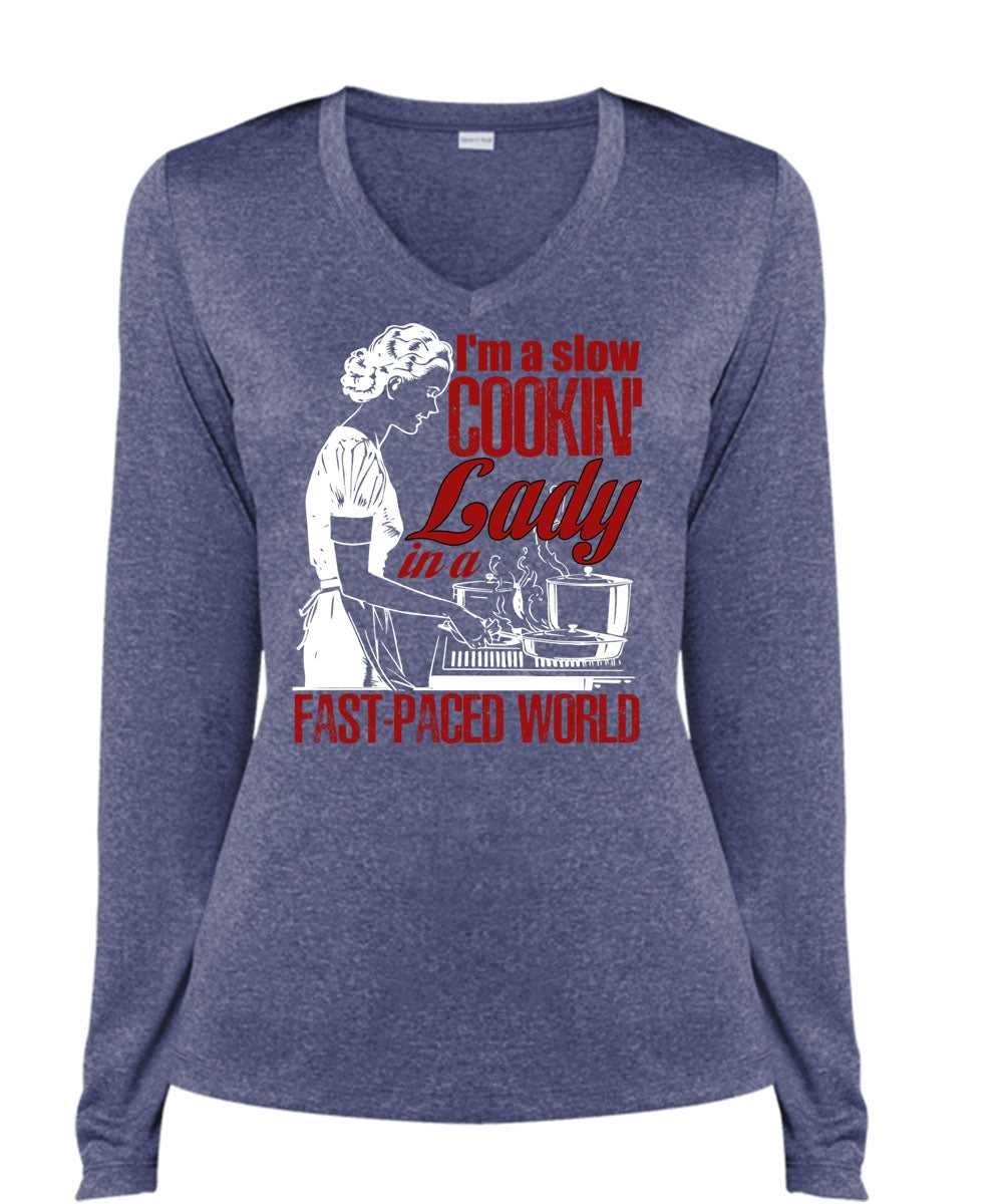 I'm A Slow Cooking Lady T Shirt, Being A Cooker T Shirt, Cool Shirt (Ladies LS Heather V-Neck)