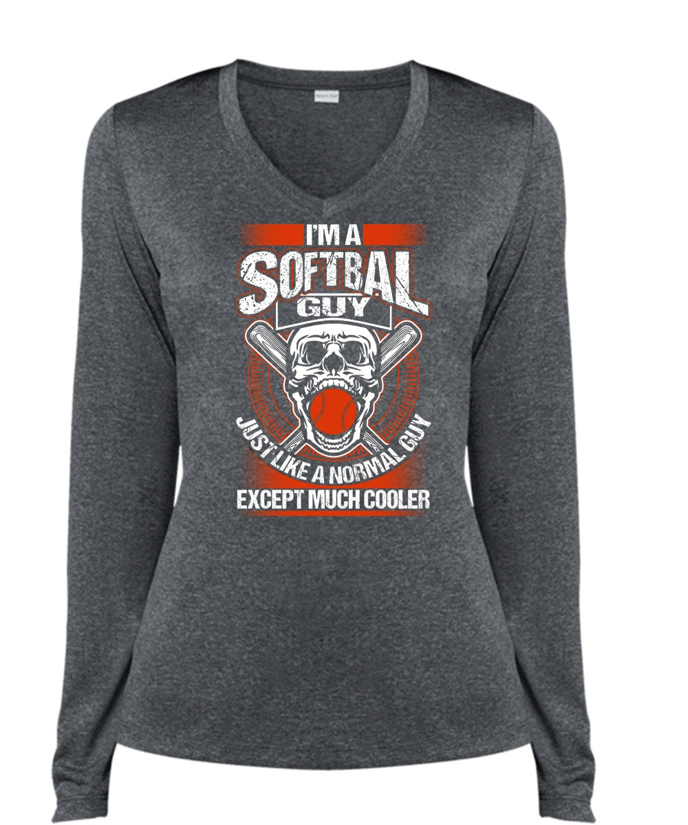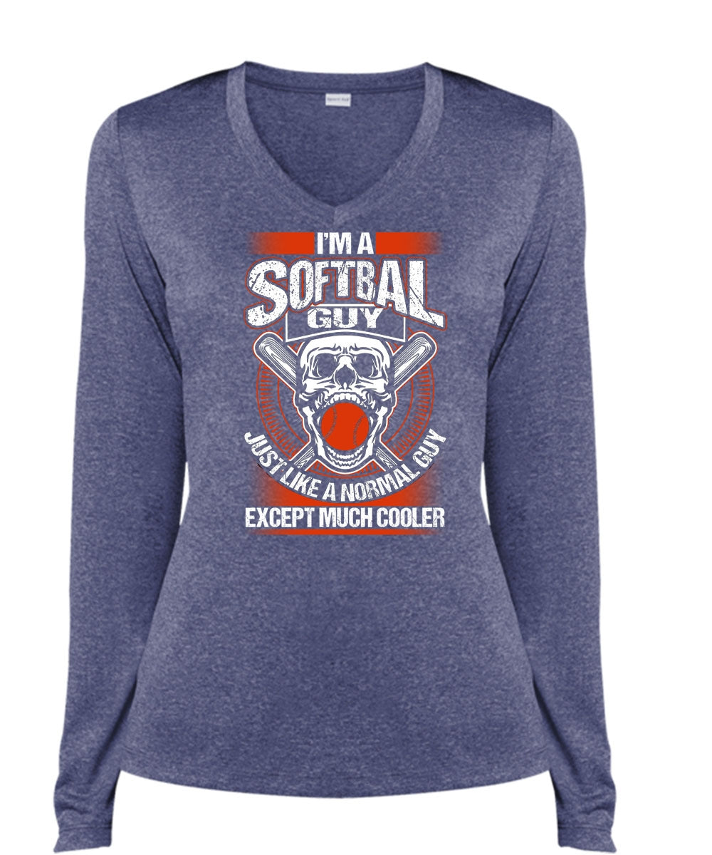 I'm A Softball Guy T Shirt, I Love Softball T Shirt, Cool Shirt (Ladies LS Heather V-Neck)