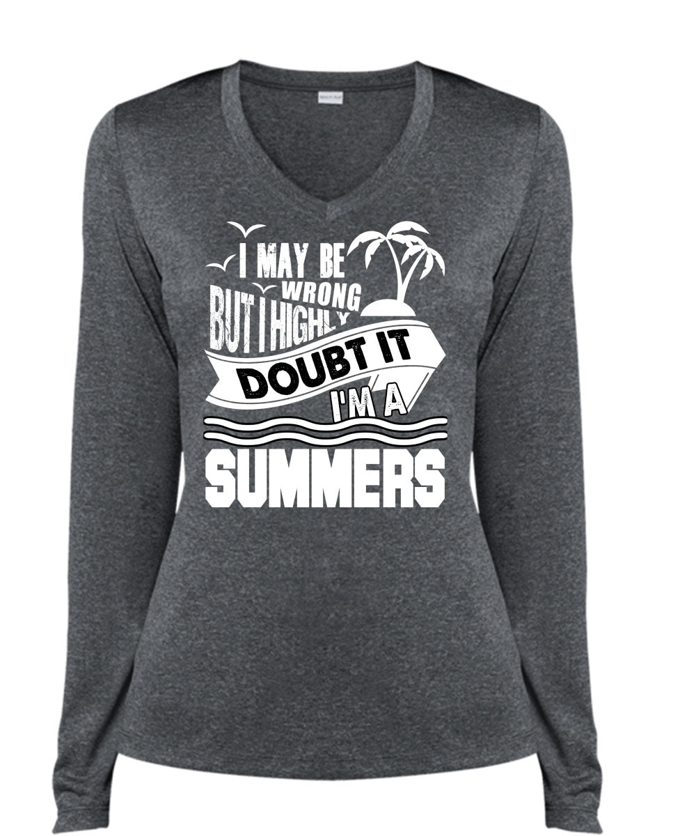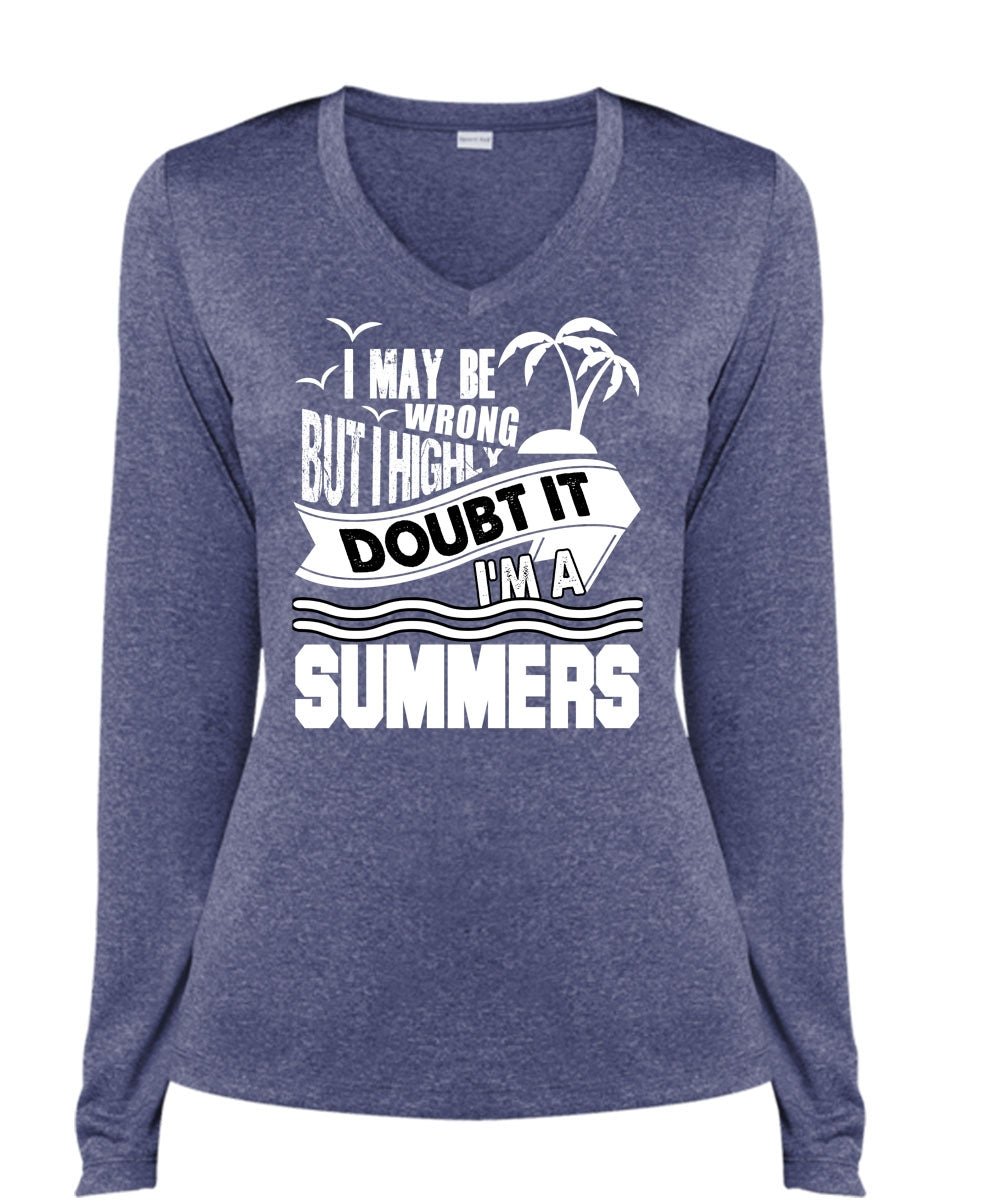 I'm A Summers T Shirt, I May Be Wrong T Shirt, Cool Shirt (Ladies LS Heather V-Neck)