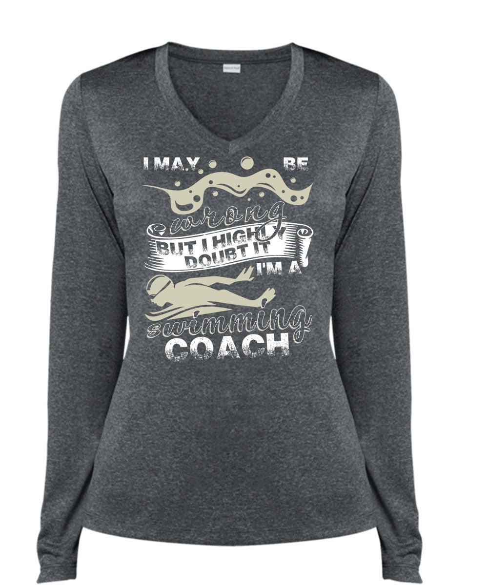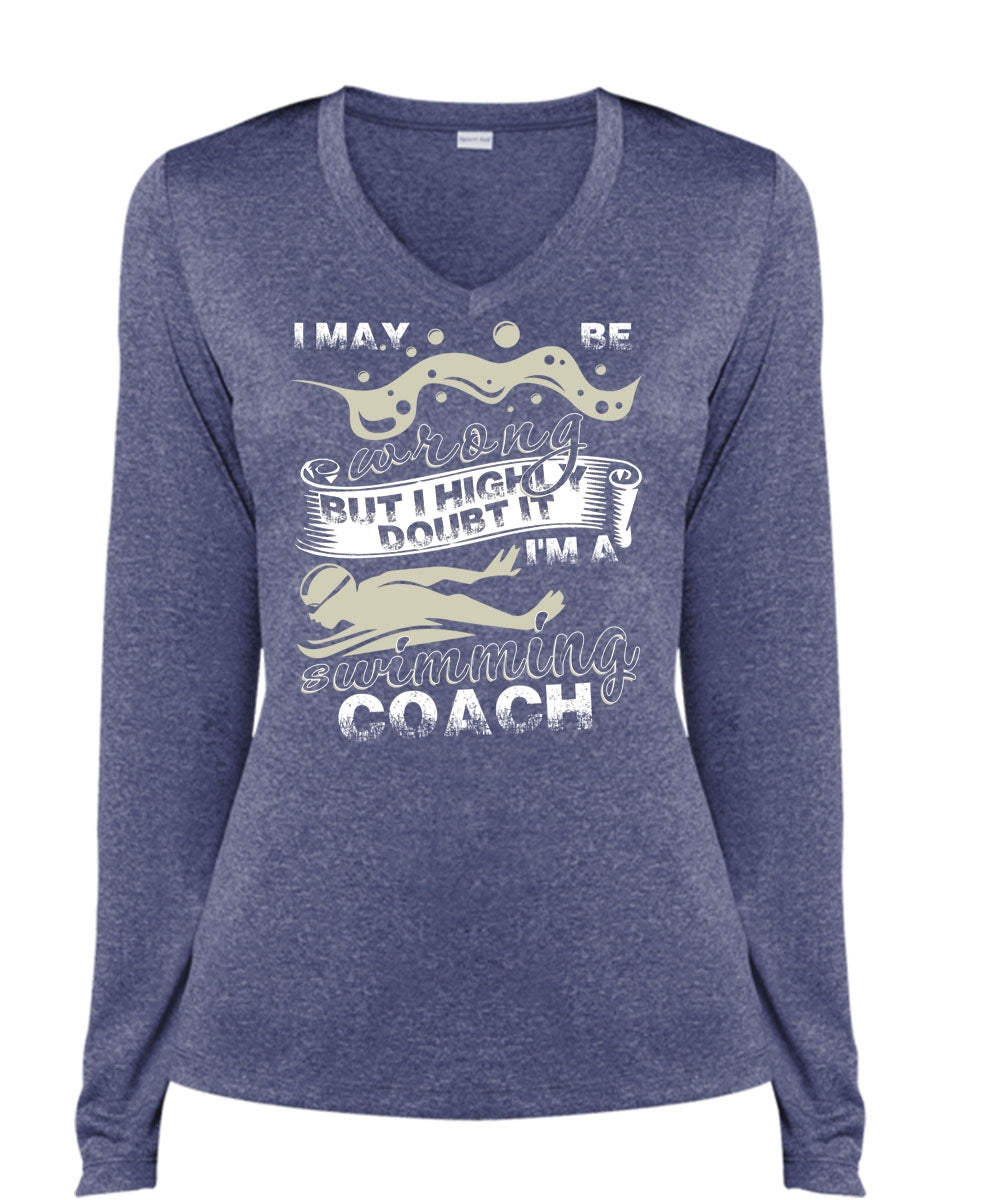 I'm A Swimming Coach T Shirt, Being A Swimmer T Shirt, Cool Shirt (Ladies LS Heather V-Neck)