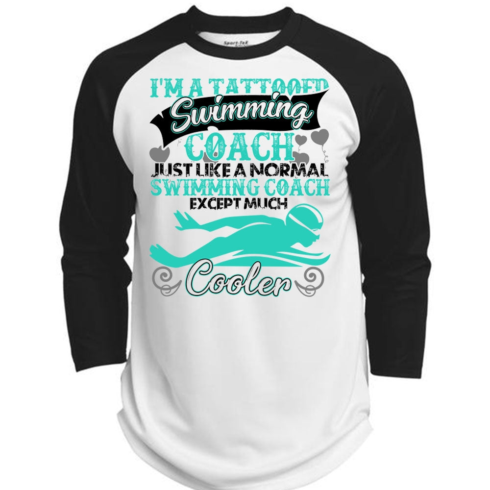 I'm A Tattooed Swimming Coach T Shirt, I Love Swimmer T Shirt, Awesome T-Shirts (Polyester Game Baseball Jersey)