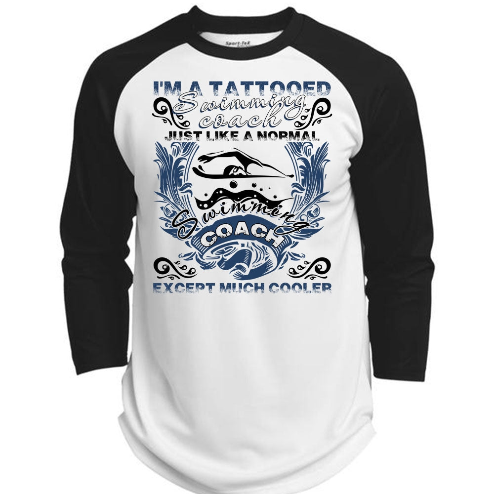 I'm A Tattooed Swimming Coach T Shirt, I Love Swimming T Shirt, Awesome T-Shirts (Polyester Game Baseball Jersey)
