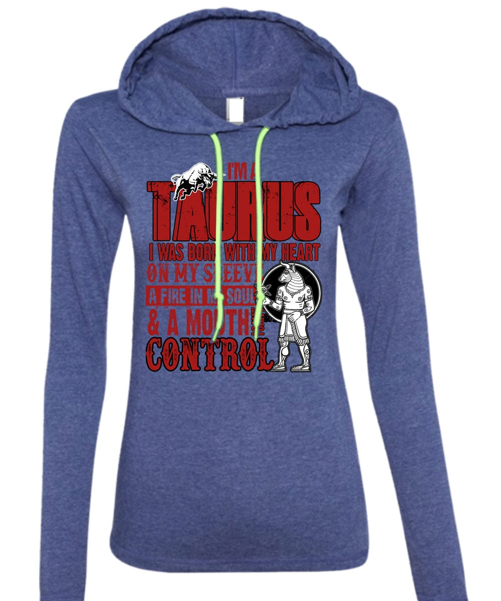 I'm A Taurus T Shirt, I Can't Control T Shirt (Anvil Ladies Ringspun Hooded)