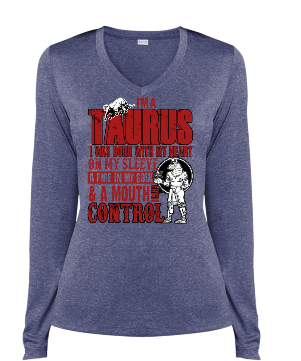 I'm A Taurus T Shirt, I Can't Control T Shirt, Cool Shirt (Ladies LS Heather V-Neck)