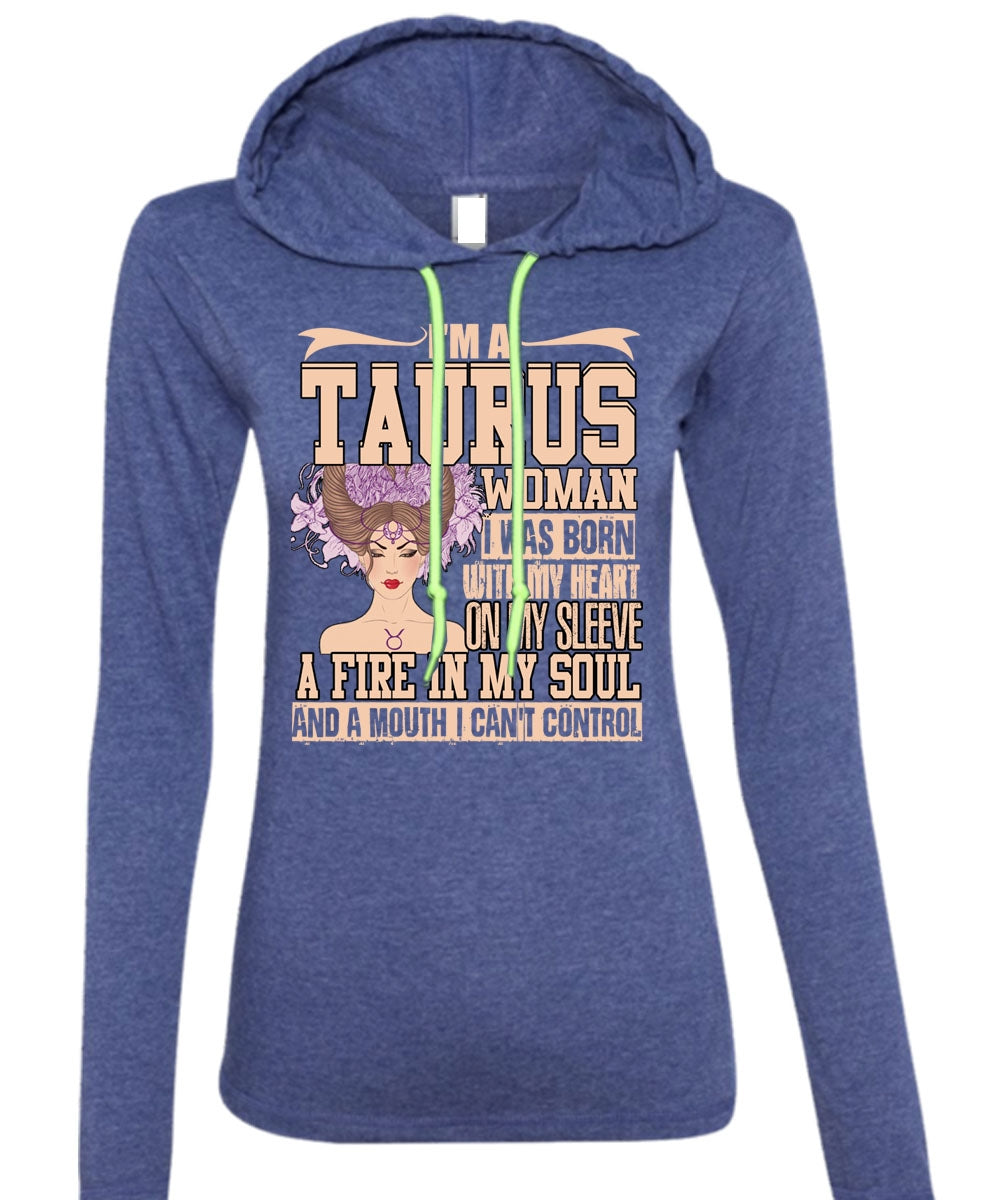 I'm A Taurus Woman T Shirt, Fire In My Soul T Shirt (Anvil Ladies Ringspun Hooded)