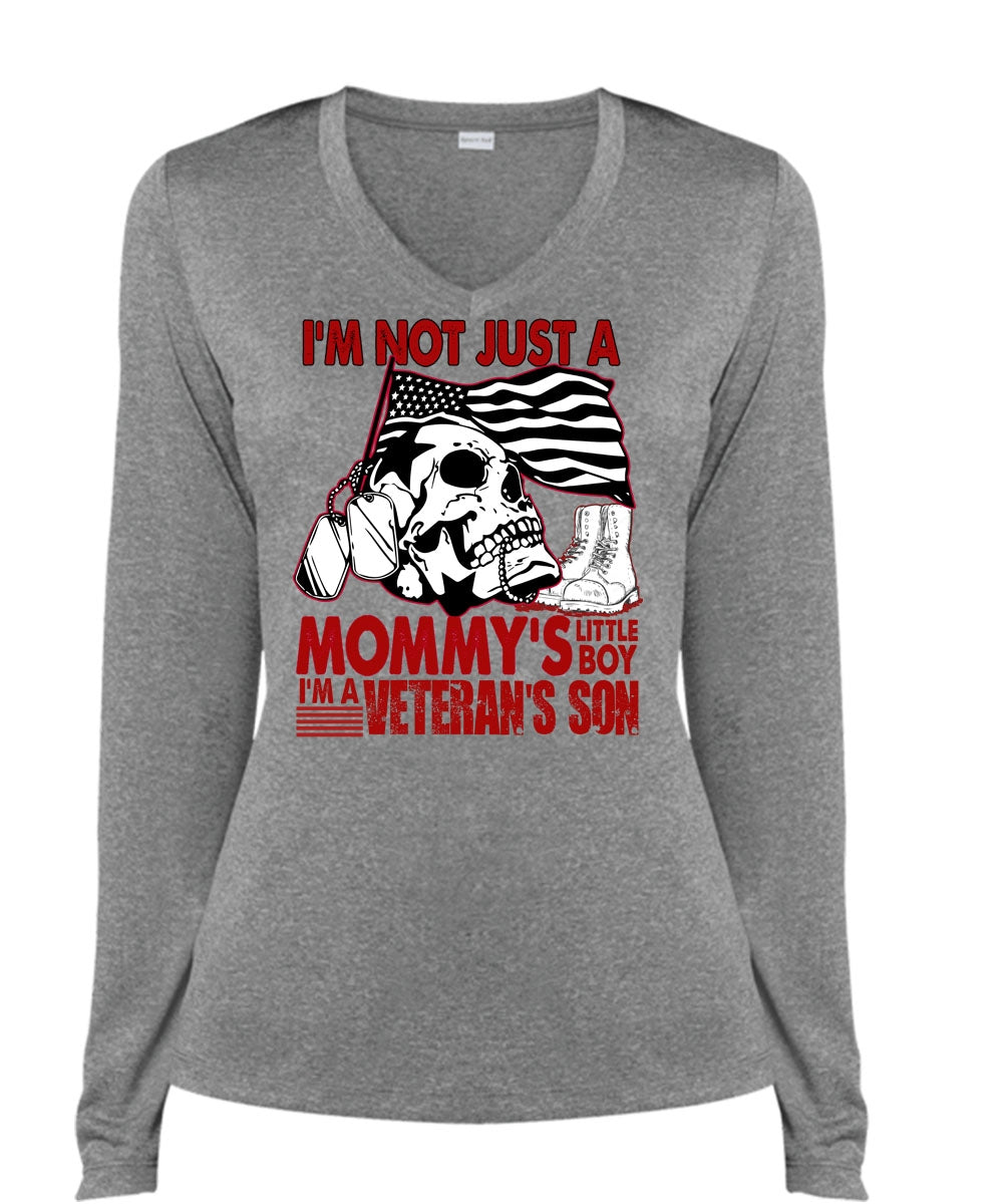 I'm A Veteran's Son T Shirt, Mommy's Little Boy T Shirt, Cool Shirt (Ladies LS Heather V-Neck)