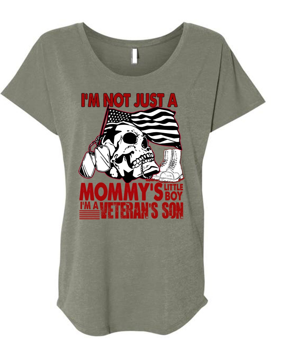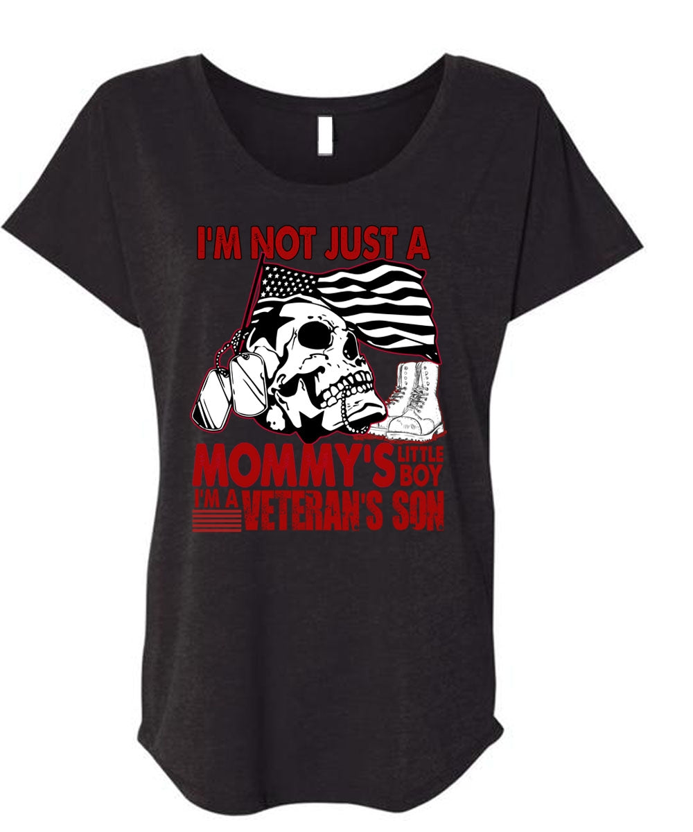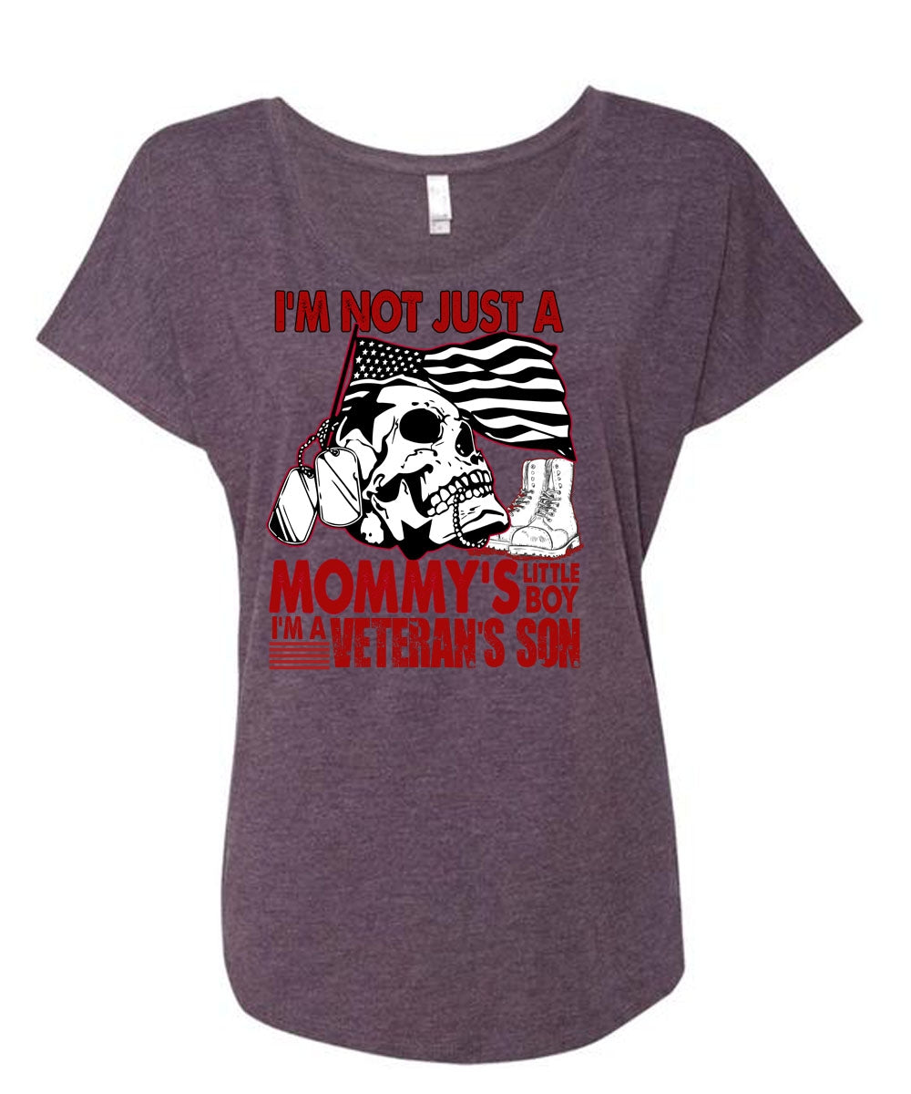 I'm A Veteran's Son T Shirt, Mommy's Little Boy T Shirt, Cool Shirt (Ladies' Triblend Dolman Sleeve)