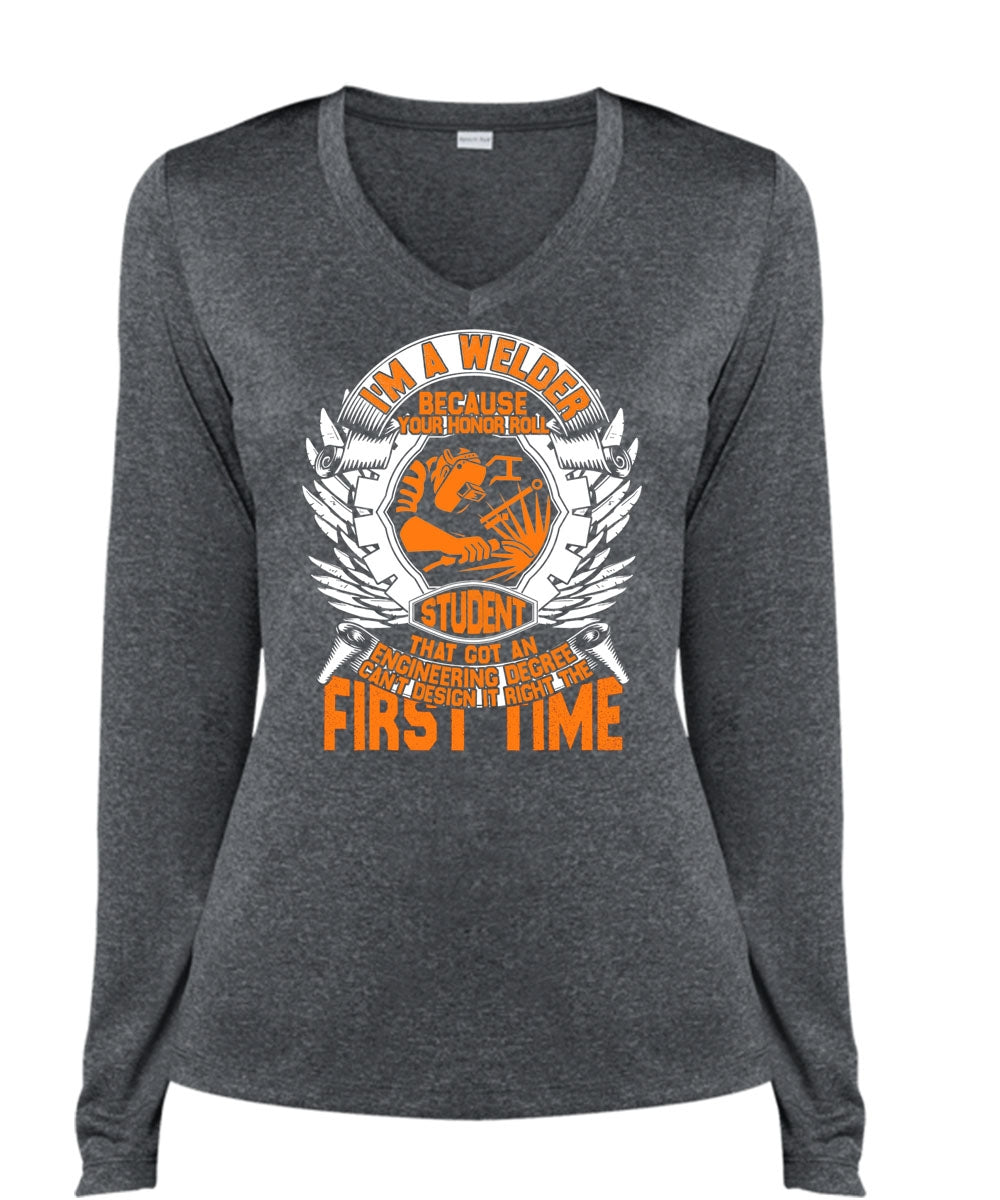 I'm A Welder T Shirt, Engineering Degree T Shirt, Cool Shirt (Ladies LS Heather V-Neck)