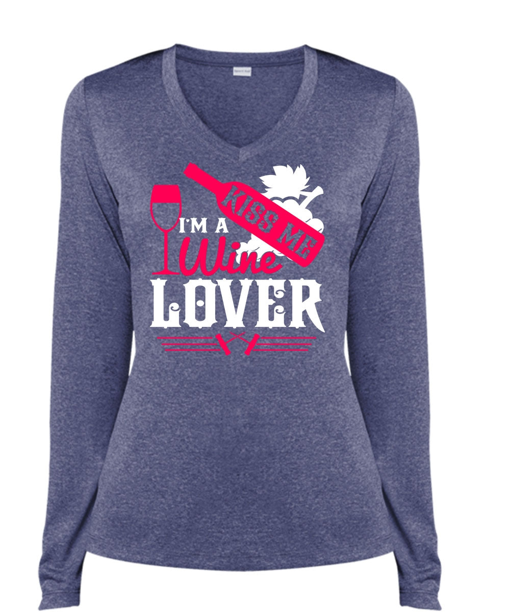 I'm A Wine Lover T Shirt, Kiss Me T Shirt, Cool Shirt (Ladies LS Heather V-Neck)