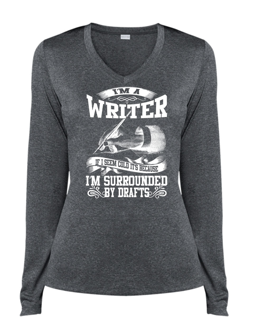 I'm A Writer T Shirt, I'm Surrounded By Drafts T Shirt, Cool Shirt (Ladies LS Heather V-Neck)