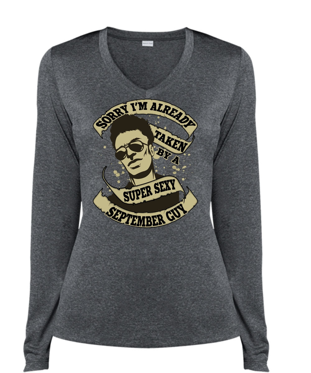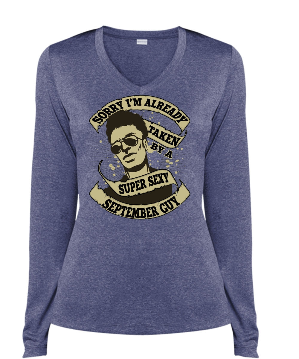 I'm Already Taken By A September Guy T Shirt, Being A Boyfriend T Shirt, Cool Shirt (Ladies LS Heather V-Neck)