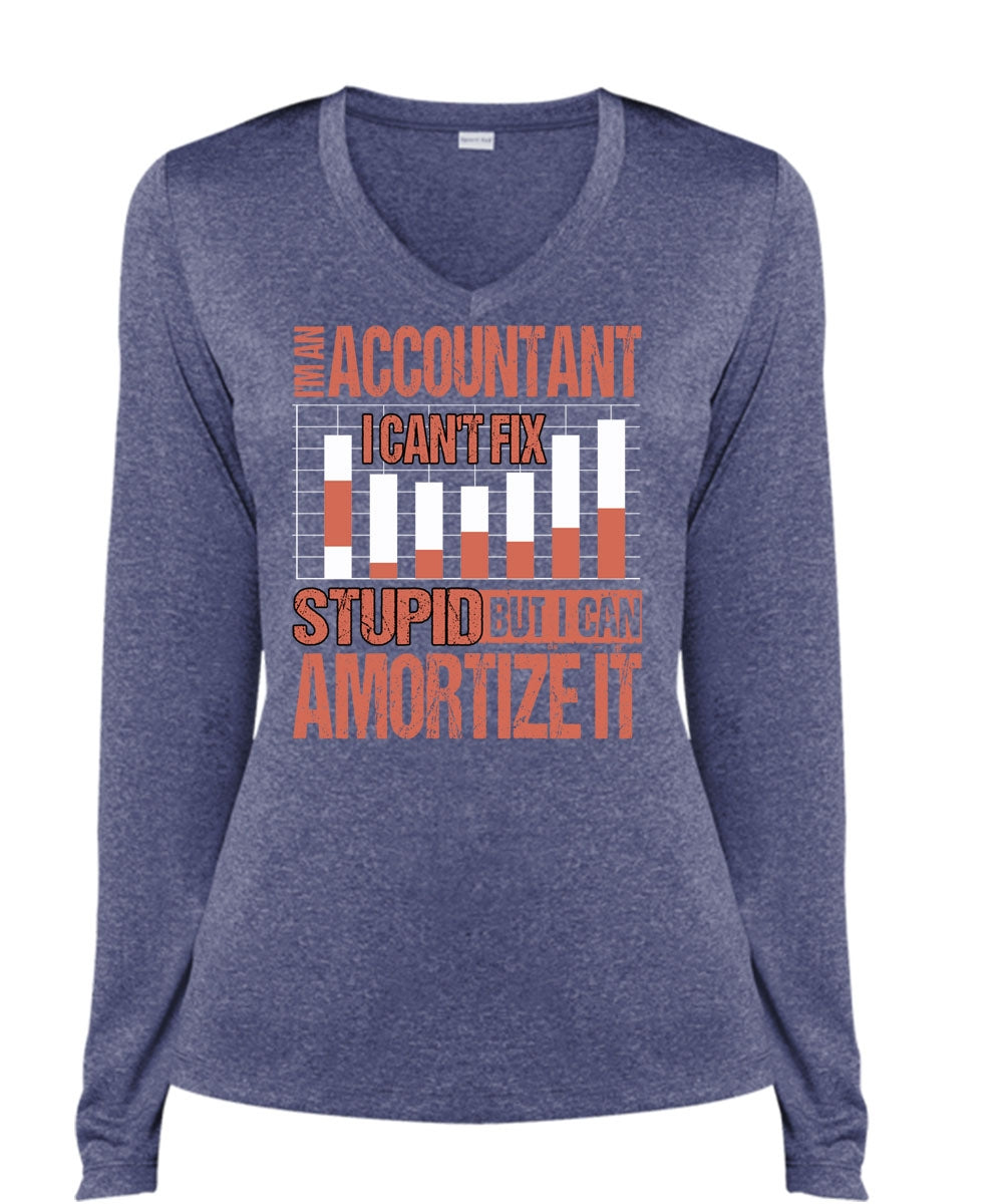 I'm An Accountant T Shirt, I Can't Fix Stupid T Shirt, Cool Shirt (Ladies LS Heather V-Neck)