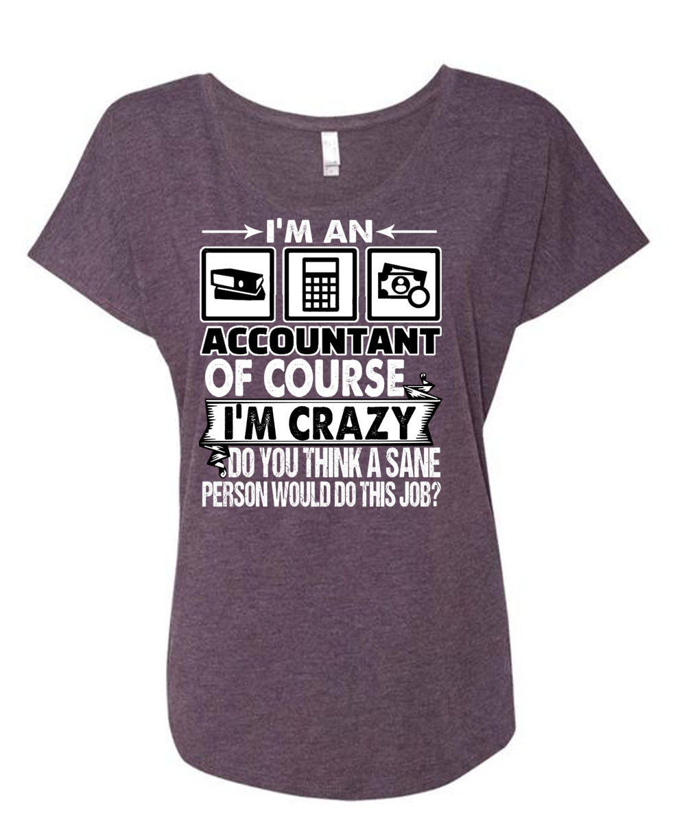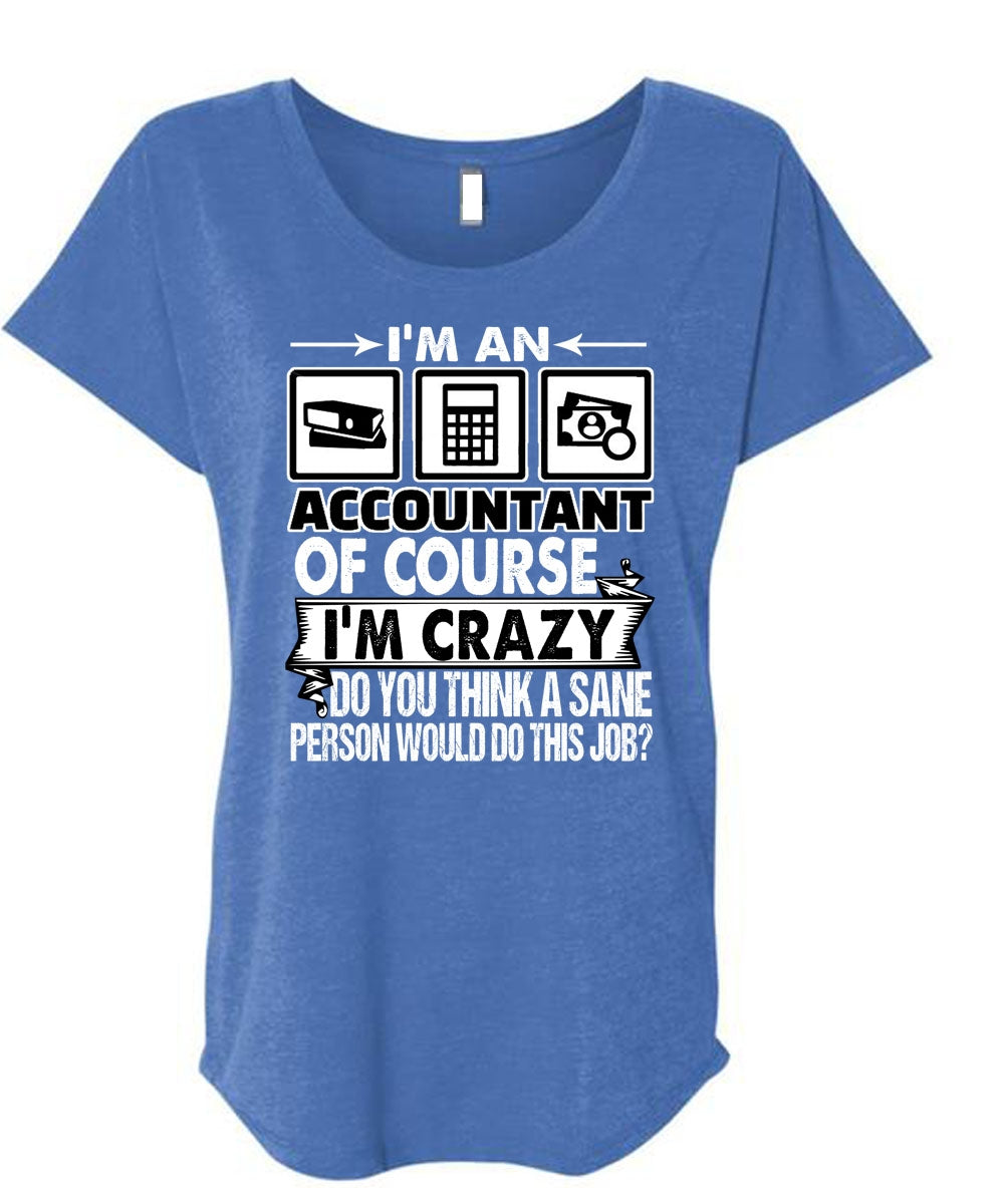 I'm An Accountant T Shirt, I'm Crazy T Shirt, Cool Shirt (Ladies' Triblend Dolman Sleeve)
