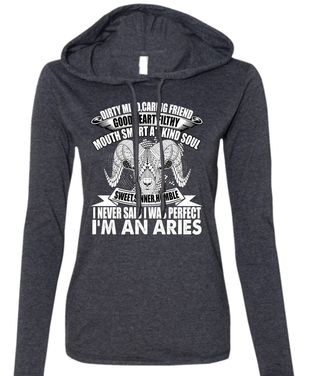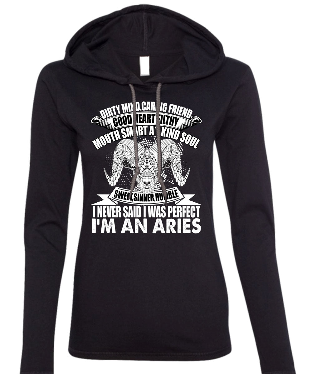 I'm An Aries T Shirt, Dirty Mind Caring Friend T Shirt (Anvil Ladies Ringspun Hooded)