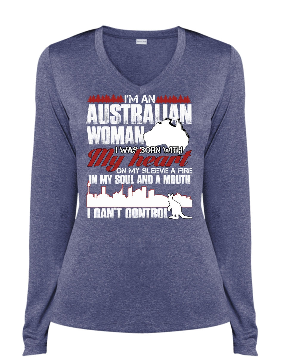 I'm An Australian Woman T Shirt, I Can't Control T Shirt, Cool Shirt (Ladies LS Heather V-Neck)