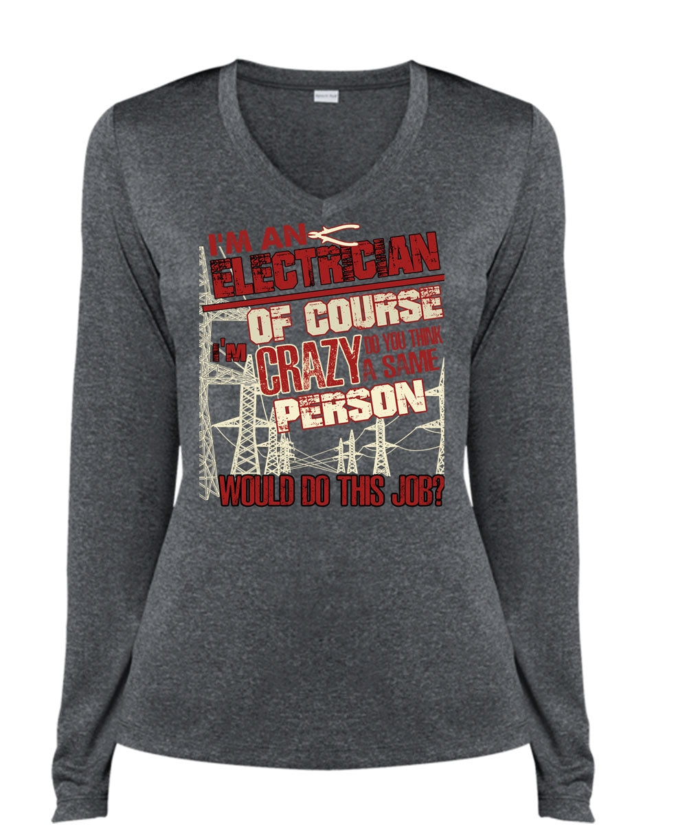 I'm An Electrician T Shirt, Crazy Person T Shirt, Cool Shirt (Ladies LS Heather V-Neck)