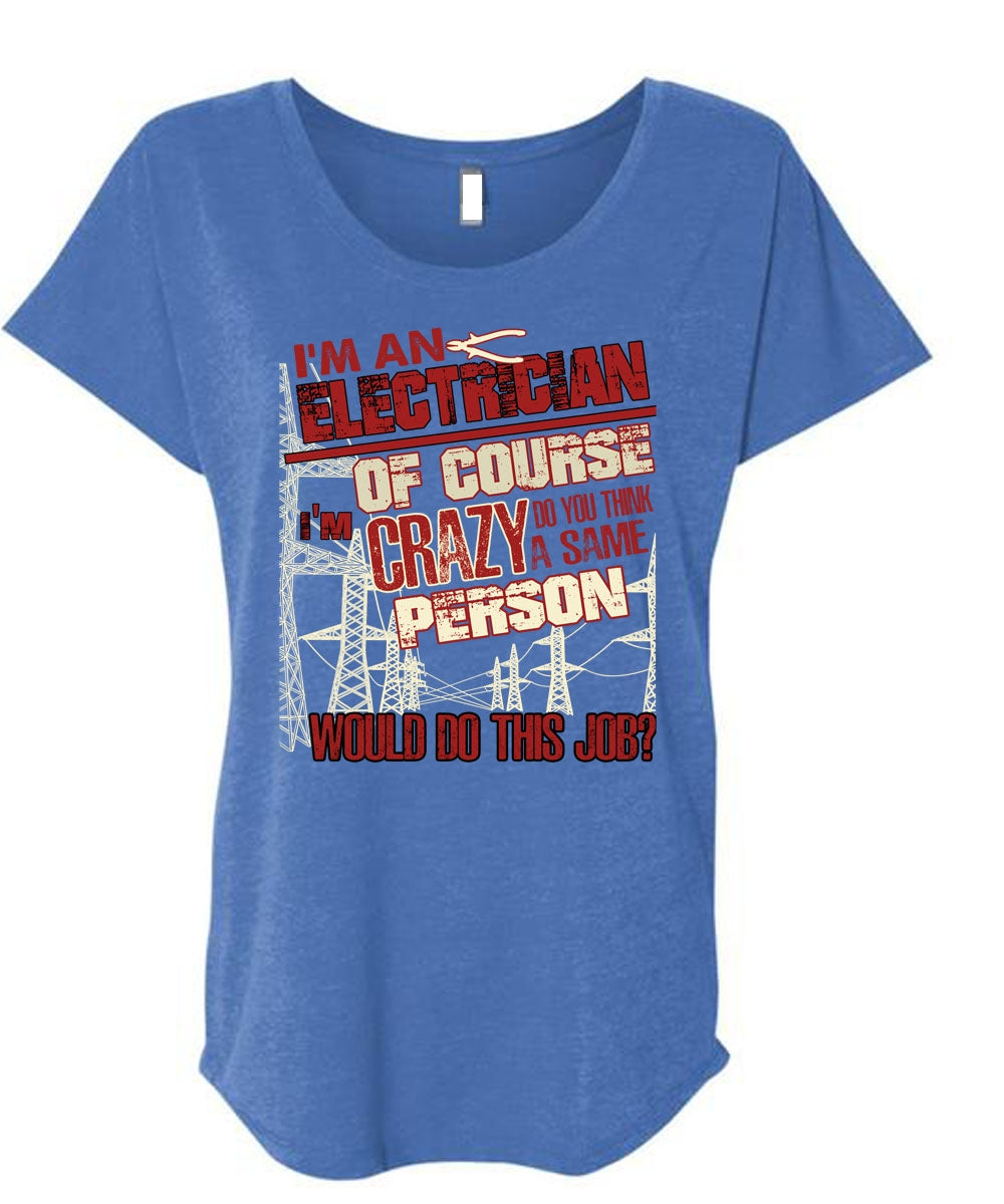 I'm An Electrician T Shirt, Crazy Person T Shirt, Cool Shirt (Ladies' Triblend Dolman Sleeve)