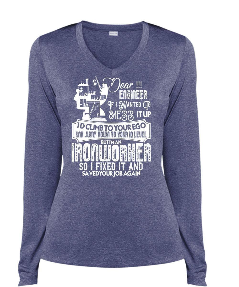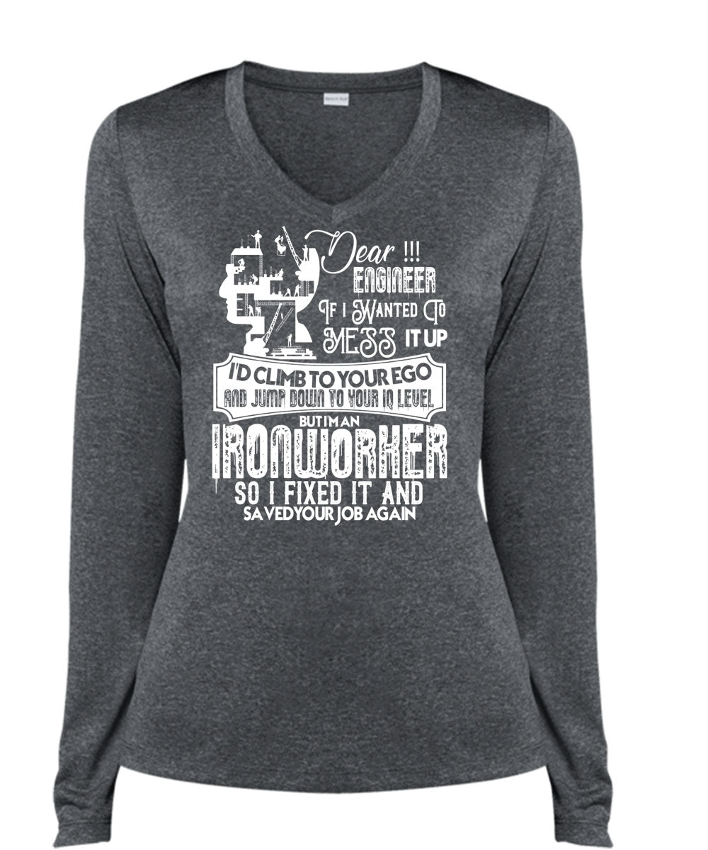 I'm An Ironworker T Shirt, I Fixed It T Shirt, Cool Shirt (Ladies LS Heather V-Neck)