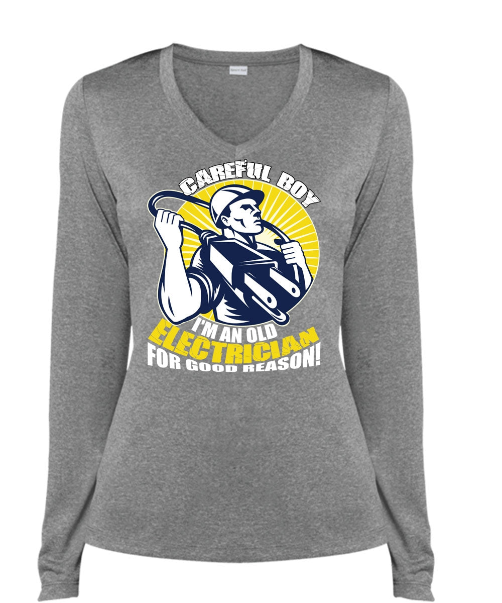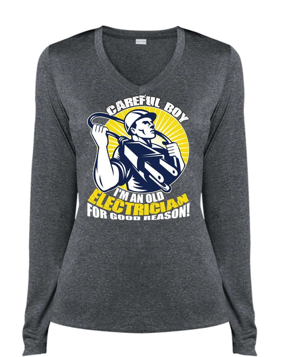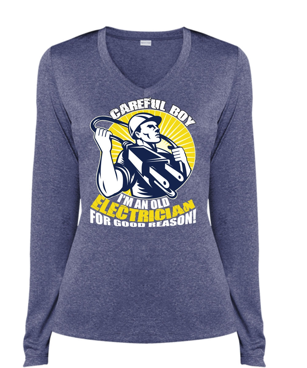 I'm An Old Electrician T Shirt, Being An Electrician T Shirt, Cool Shirt (Ladies LS Heather V-Neck)