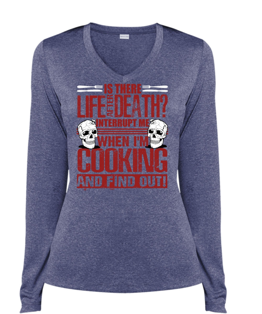 I'm Cooking T Shirt, Is There Life After Death T Shirt, Cool Shirt (Ladies LS Heather V-Neck)