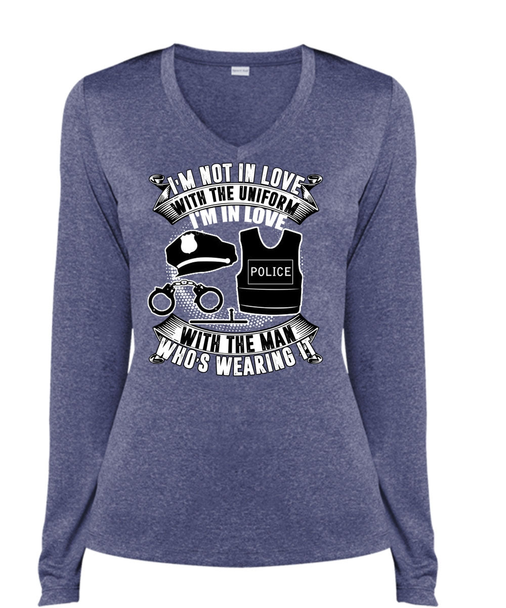 I'm In Love Police With The Man T Shirt, I'm Not In Love T Shirt, Cool Shirt (Ladies LS Heather V-Neck)