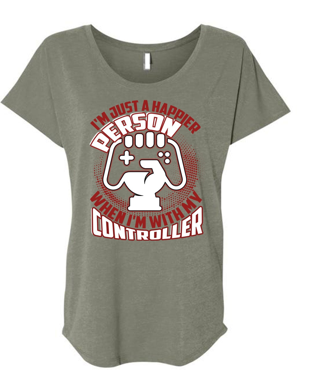 I'm Just A Happier Person T Shirt, Being A Gamer T Shirt, Cool Shirt (Ladies' Triblend Dolman Sleeve)