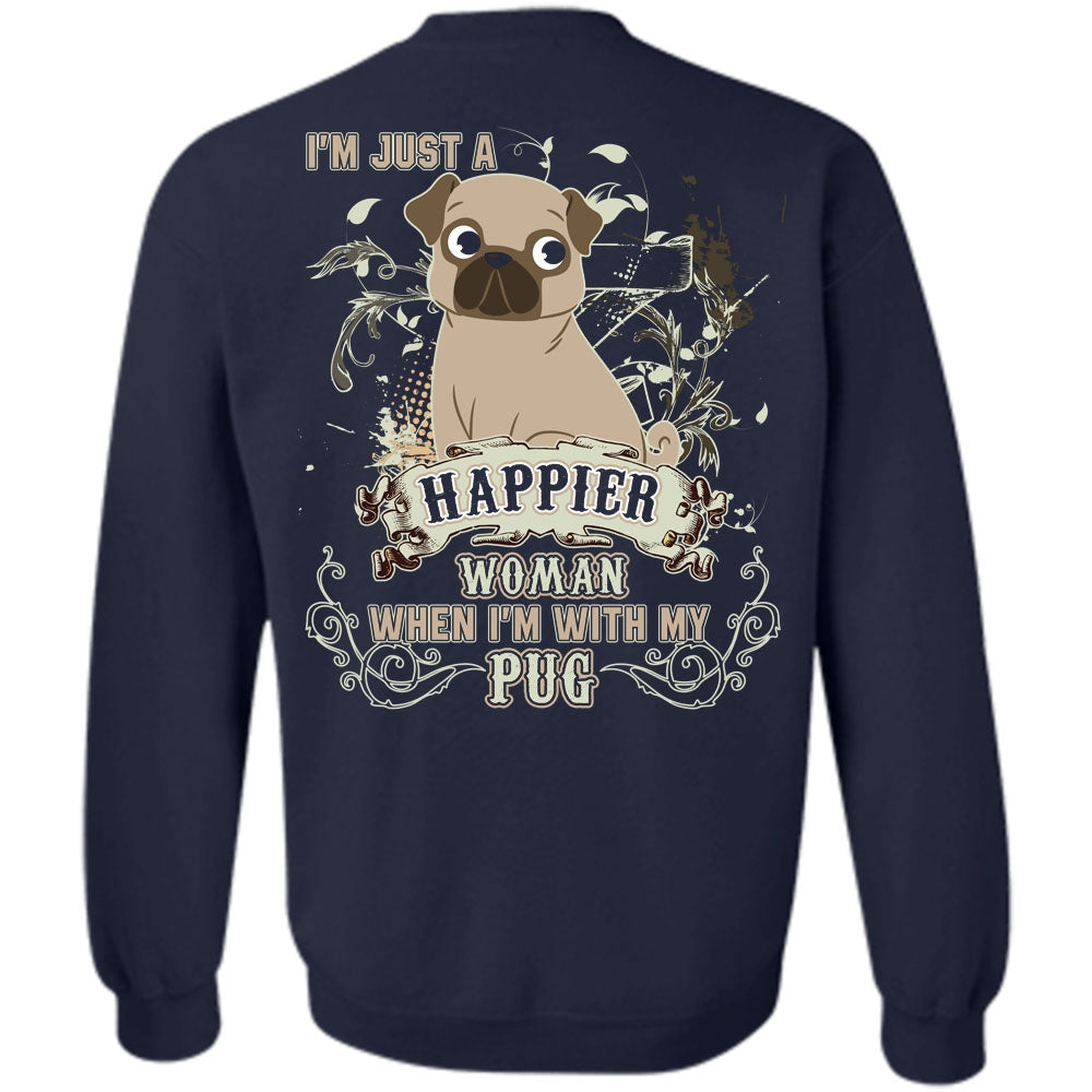 I'm Just A Happier Woman T Shirt, I Love Pug Sweatshirt