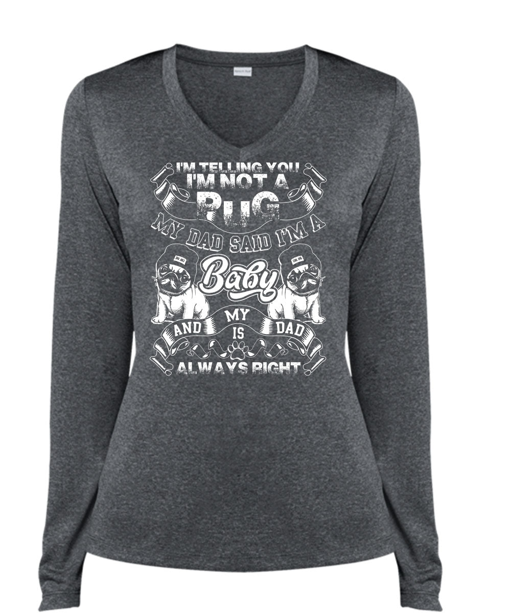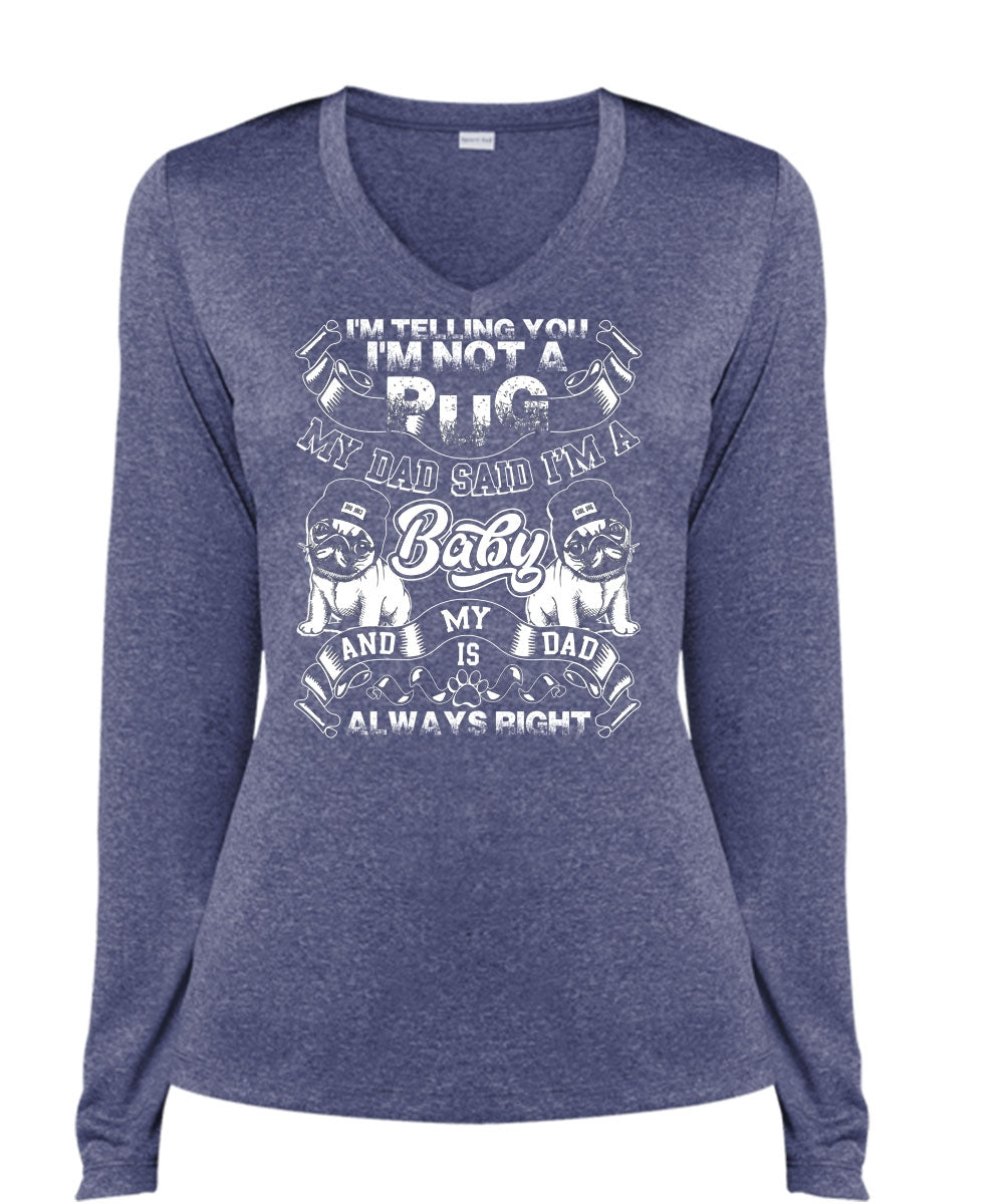 I'm Not A Pug T Shirt, My Dad Said I'm A Baby T Shirt, Cool Shirt (Ladies LS Heather V-Neck)