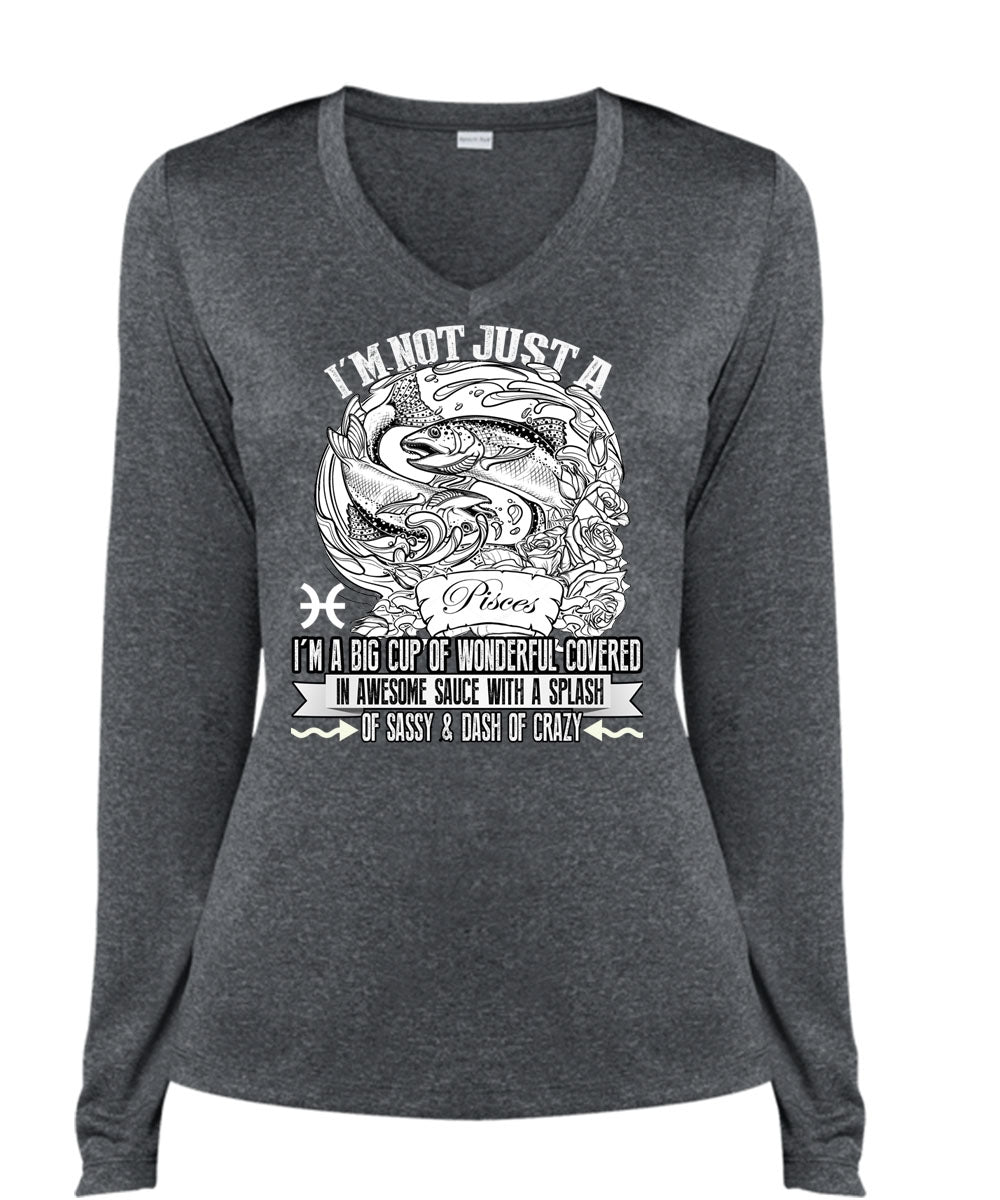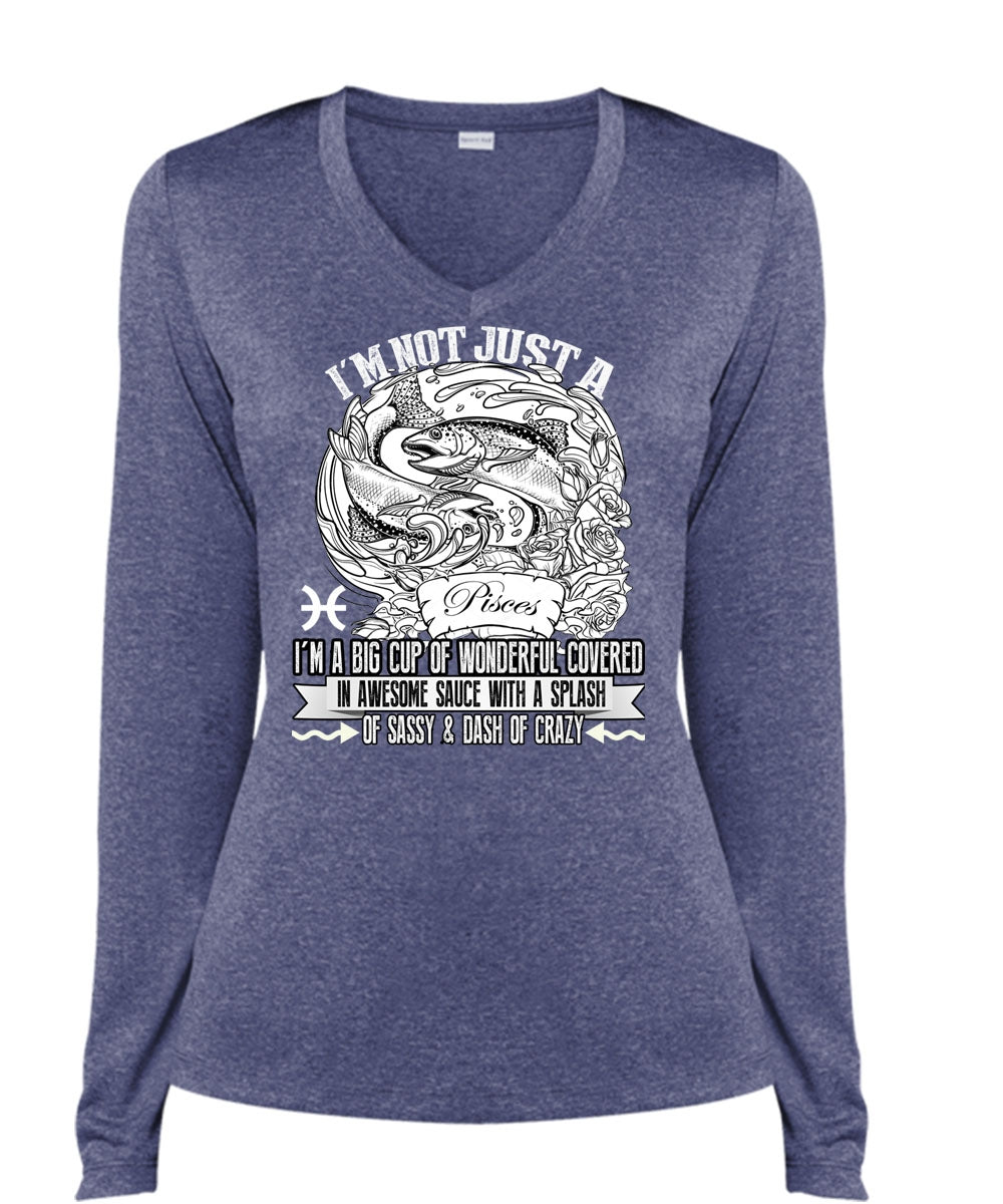 I'm Not Just A Pisces T Shirt, Dash Of Crazy T Shirt, Cool Shirt (Ladies LS Heather V-Neck)