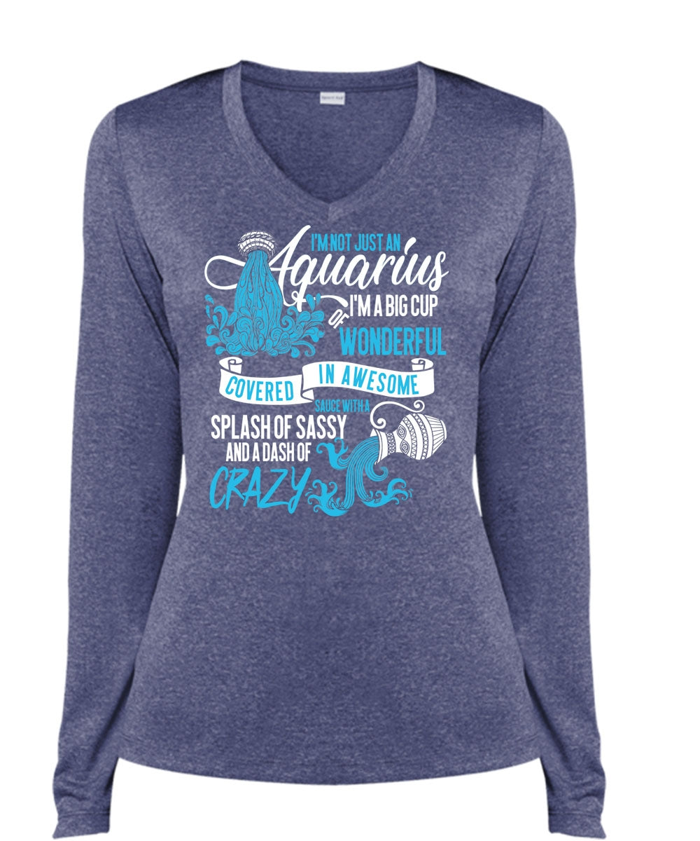 I'm Not Just An Aquarius T Shirt, Dash Of Crazy T Shirt, Cool Shirt (Ladies LS Heather V-Neck)