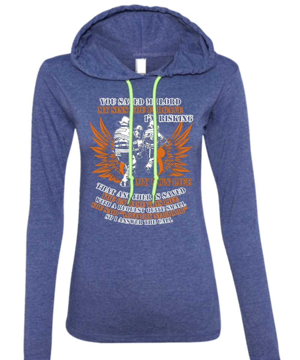 I'm Risking My Own Life T Shirt, Being A Firefighter T Shirt (Anvil Ladies Ringspun Hooded)