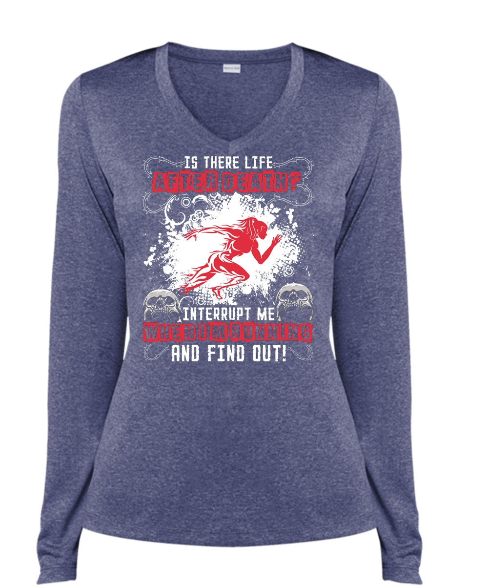 I'm Running T Shirt, Is There Life After Death T Shirt, Cool Shirt (Ladies LS Heather V-Neck)