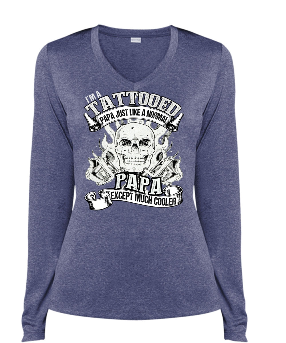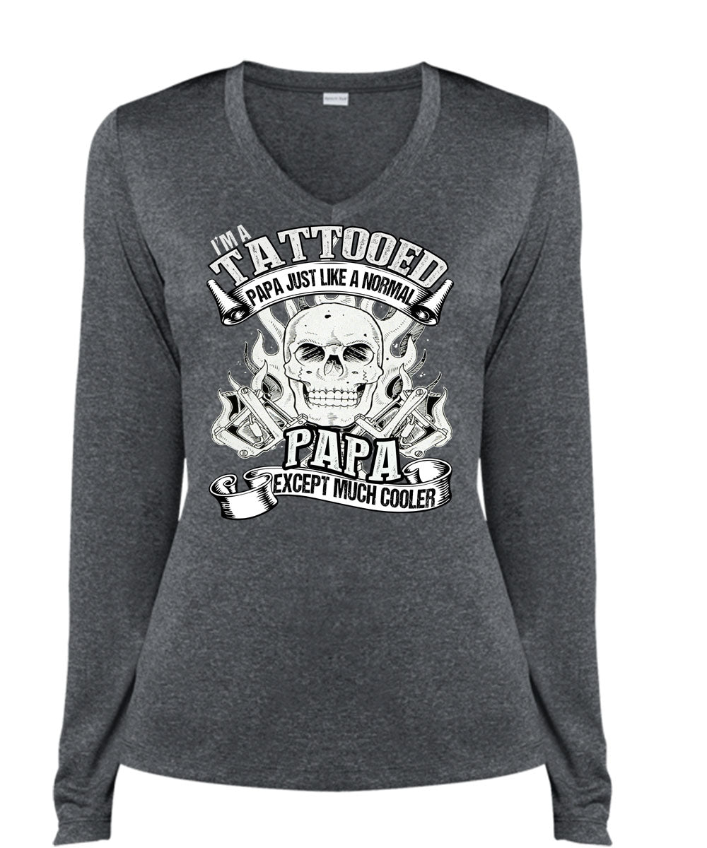 I'm Tattooed Papa T Shirt, Just Like A Normal Papa T Shirt, Cool Shirt (Ladies LS Heather V-Neck)