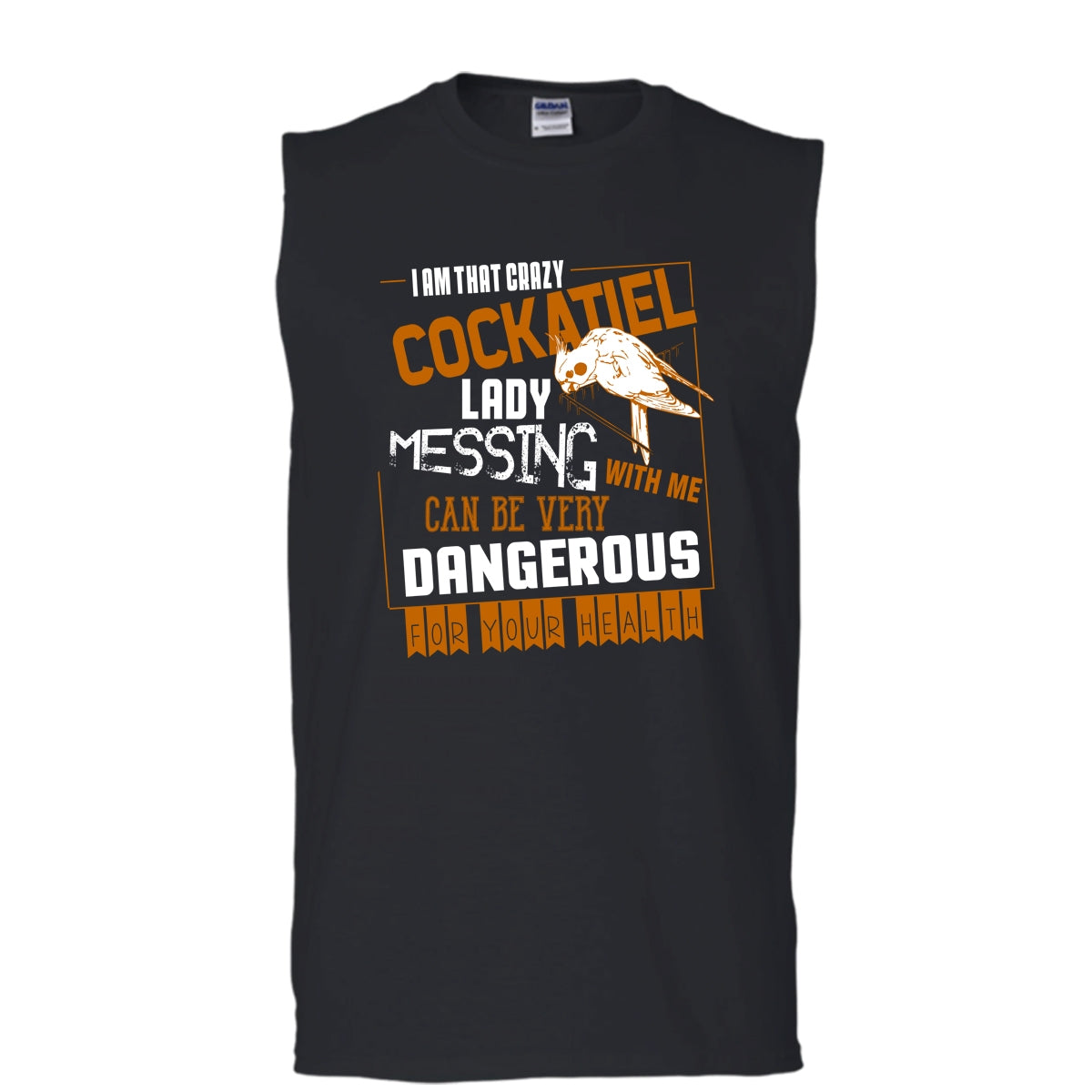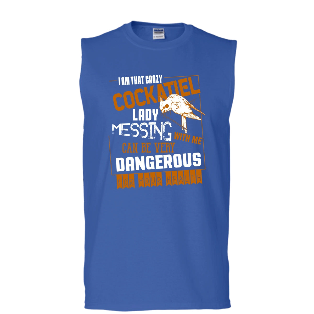 I'm That Crazy Cockatiel Lady T Shirt, Messing With Me T Shirt, Cool T Shirt (Men's Cotton Sleeveless)