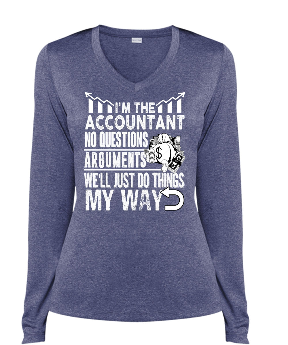 I'm The Accountant T Shirt, Being An Accountant T Shirt, Cool Shirt (Ladies LS Heather V-Neck)