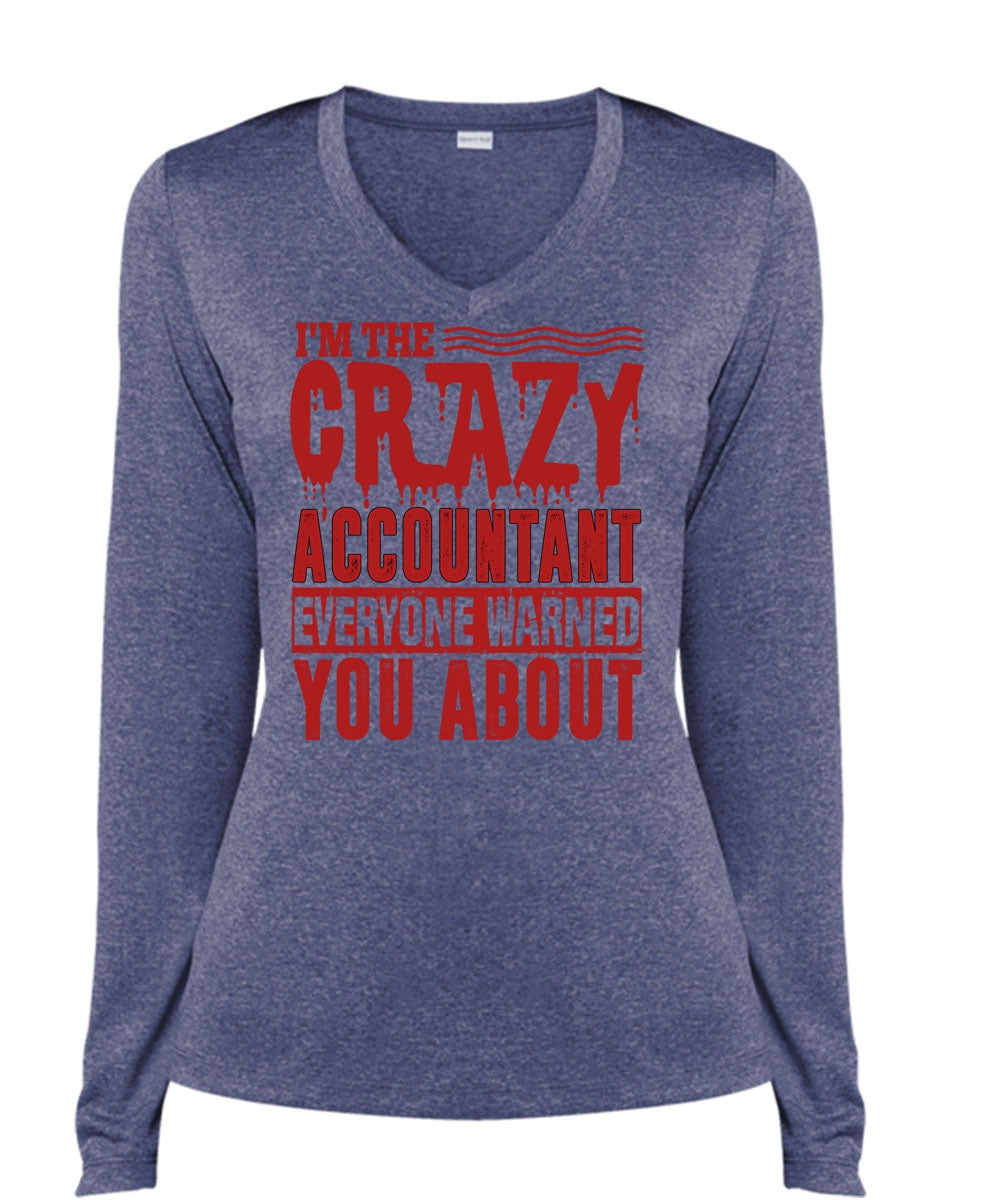 I'm The Crazy Accountant T Shirt, Being An Accountant T Shirt, Cool Shirt (Ladies LS Heather V-Neck)
