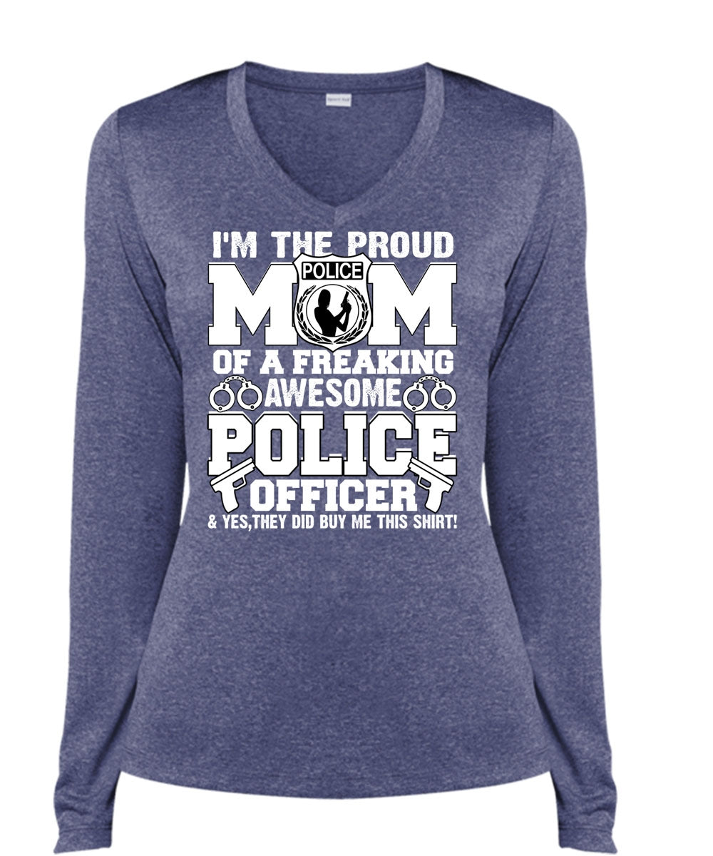 I'm The Proud Police Mom T Shirt, I Love Police T Shirt, Cool Shirt (Ladies LS Heather V-Neck)